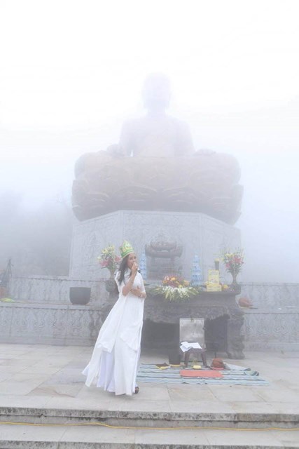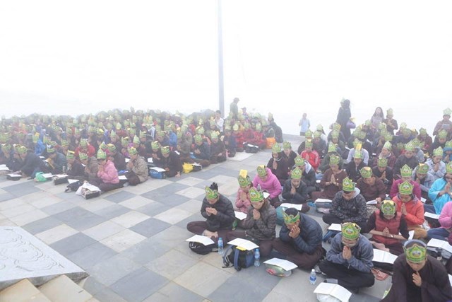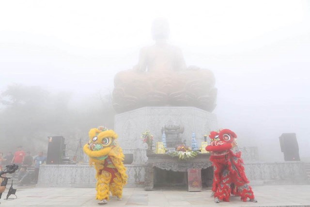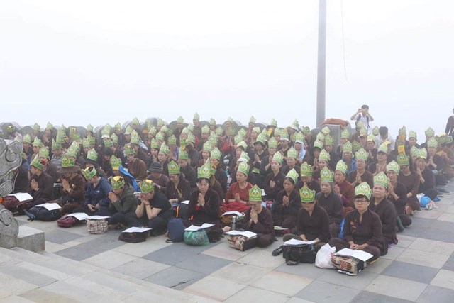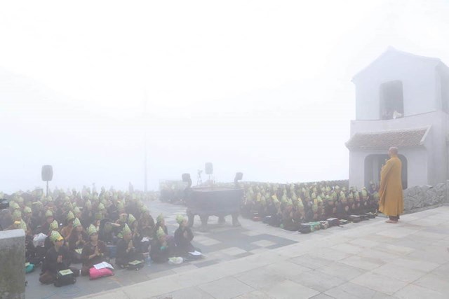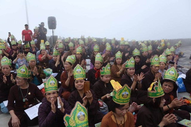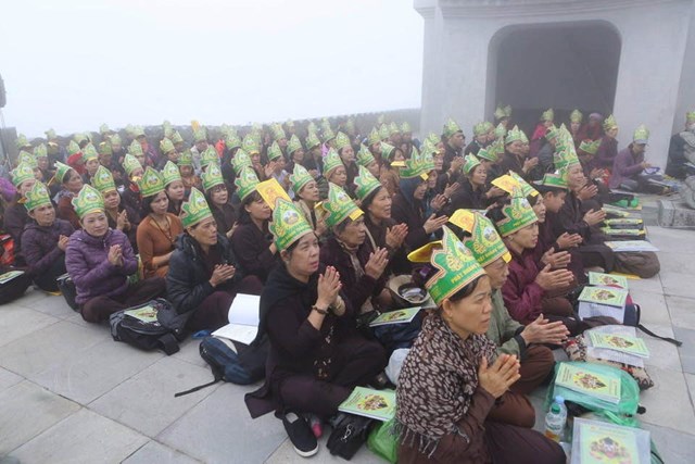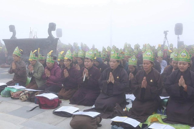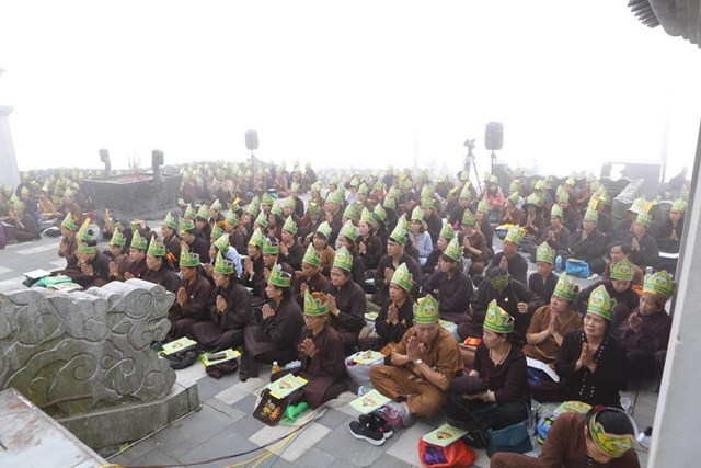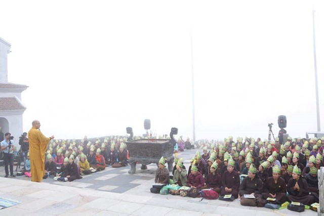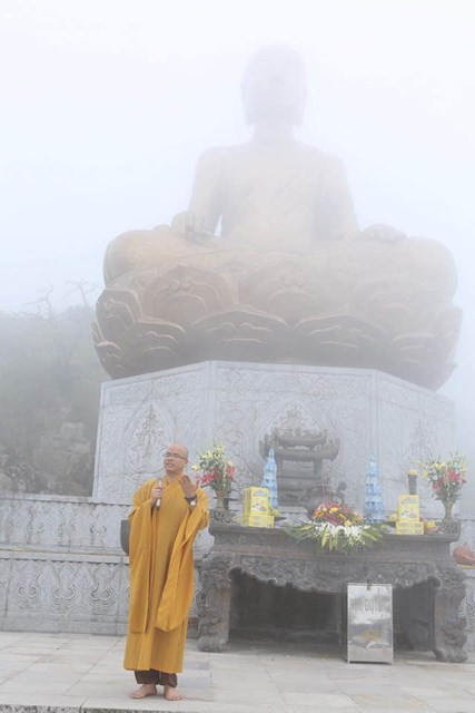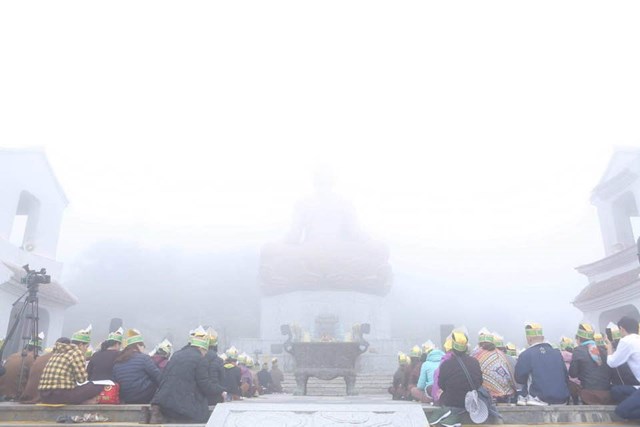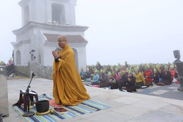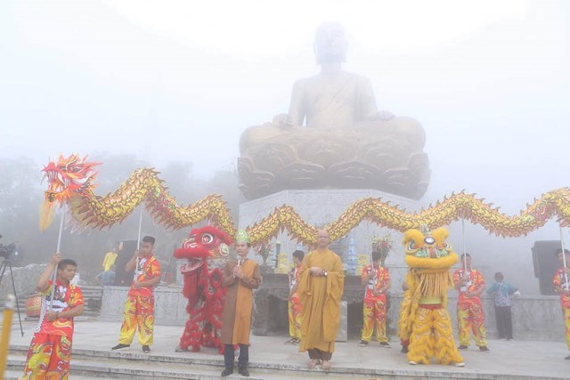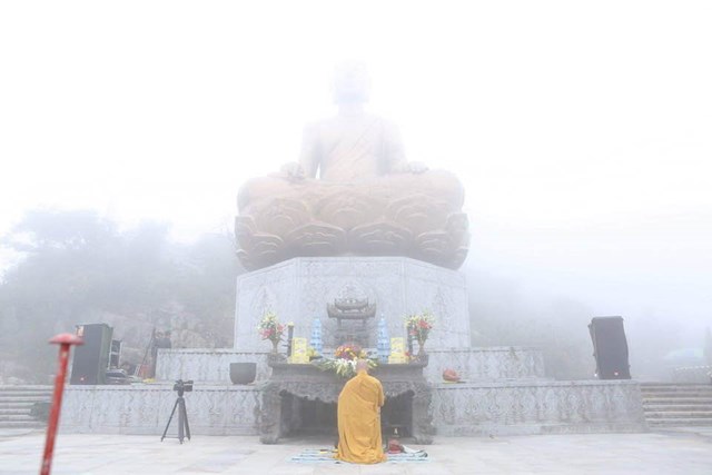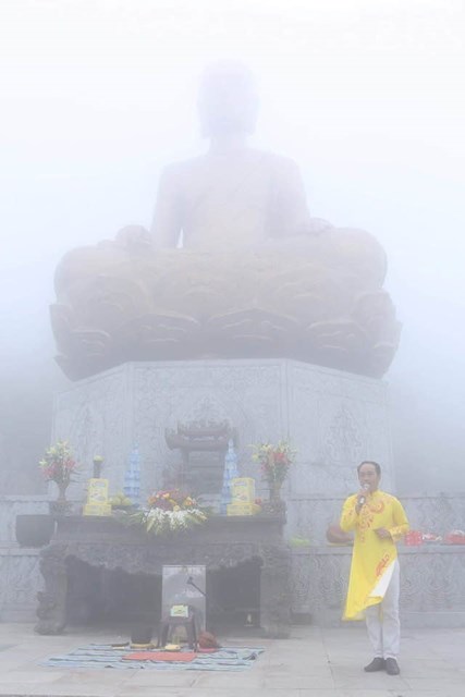 Ngay từ sáng sớm, Đại đức Thích Quảng Hiếu đã cùng các Phật tử chùa Tân Hải thượng sơn, vân tập về trước Bảo tượng Phật Hoàng Trần Nhân Tông lớn nhất Việt Nam trên đỉnh Non thiêng Yên Tử để cử hành khóa lễ tụng kinh A Di Đà, cầu nguyện Thế giới hòa bình, chúng sinh an lạc, âm siêu, dương khánh. Trước đó, Đại đức Thích Quảng Hiếu đã chia sẻ cùng toàn thể đại chúng về lịch sử , công trạng của các Vua Hùng, cũng như cuộc đời, sự nghiệp, đạo hạnh của Đức Vua – Phật Hoàng Trần Nhân Tông khi còn tại thế.
