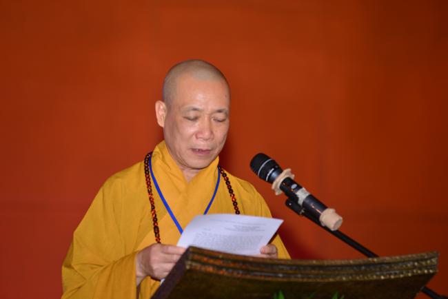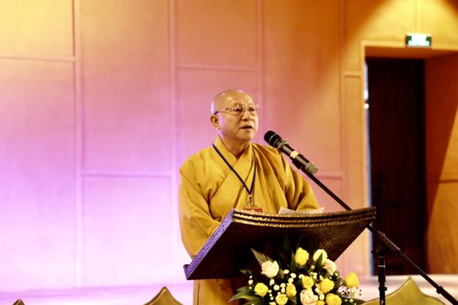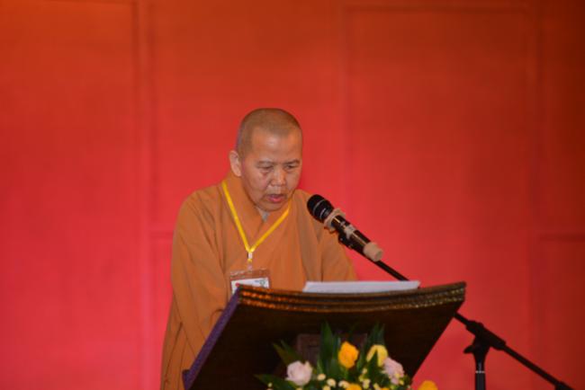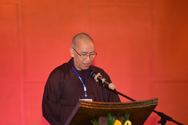 HT. Thích Thanh Nhiễu trình bày bài tham luận trước Hội thảo