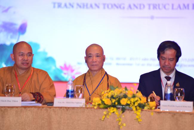 Chủ toạ Hội thảo chiều nay có Hòa thượng tiến sĩ Thích Bảo Nghiêm, Thượng toạ Tiến sĩ Thích Đức Thiện, Thượng tọa Tiến sĩ Thích Tâm Đức, Phó Giáo sư Tiến sĩ Nguyễn Kim Sơn, Giáo sư Tiến sĩ Khoa học Vũ Minh Giang và Bà Sandra J.Kelly.