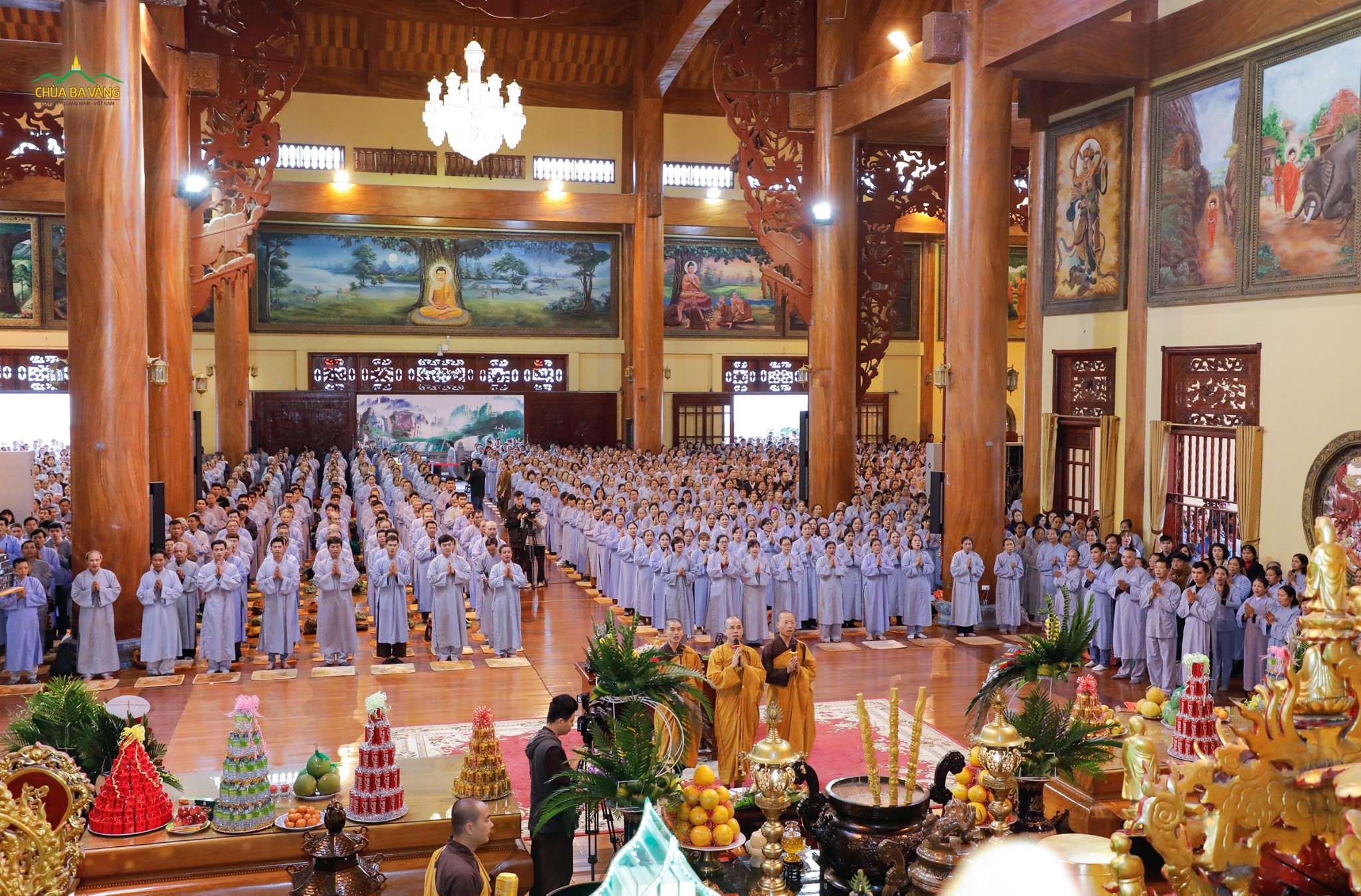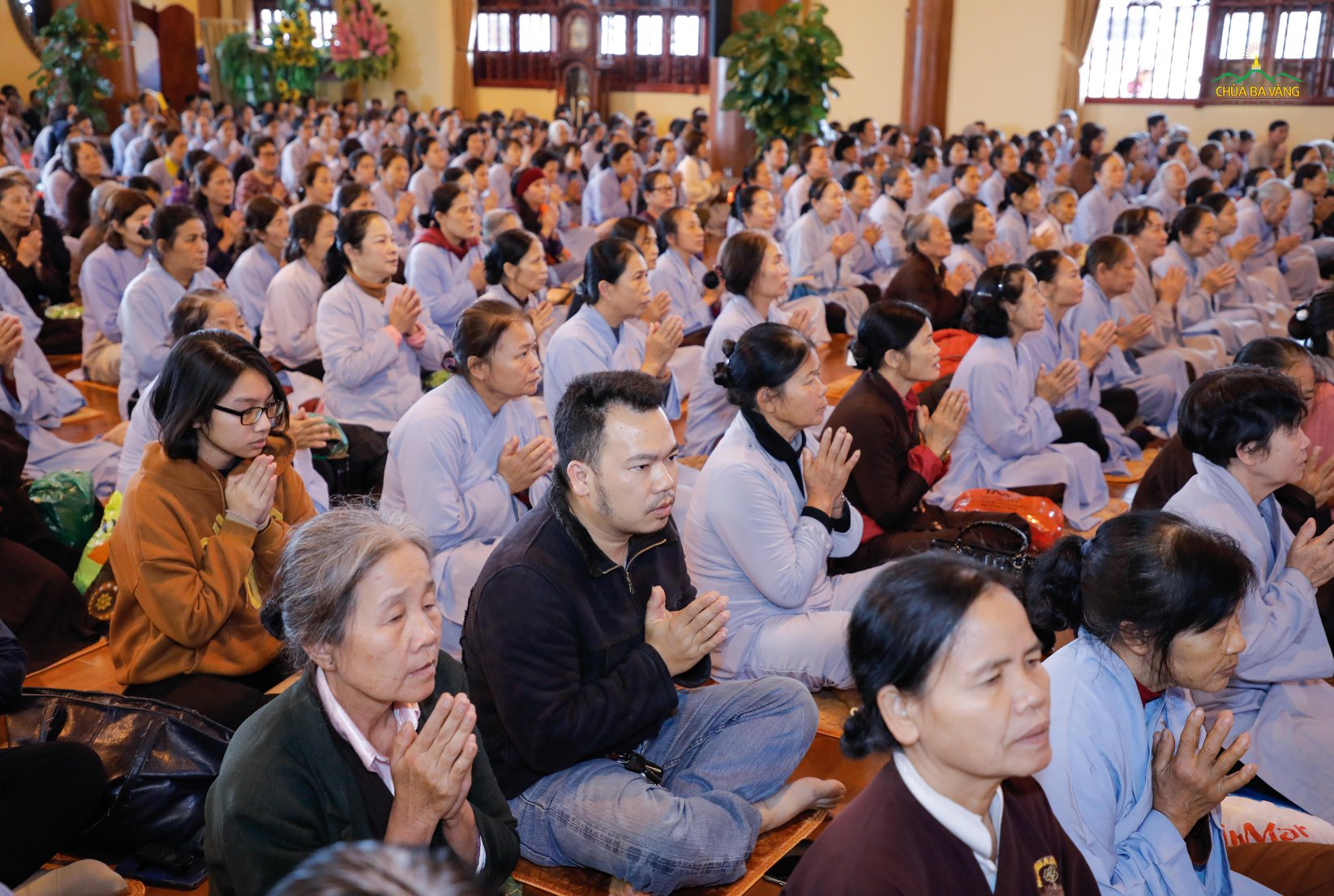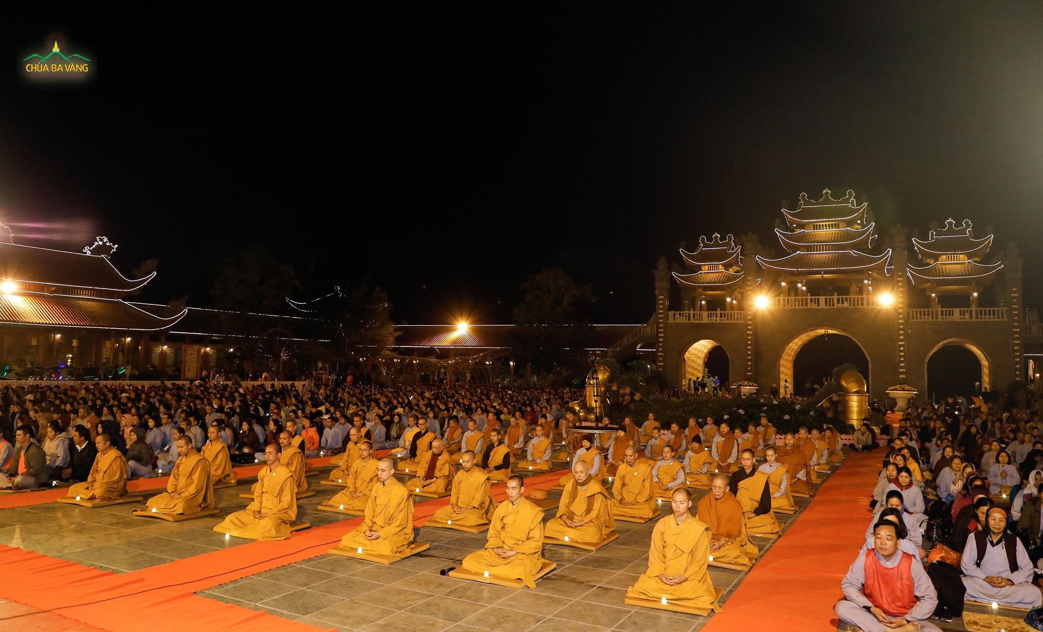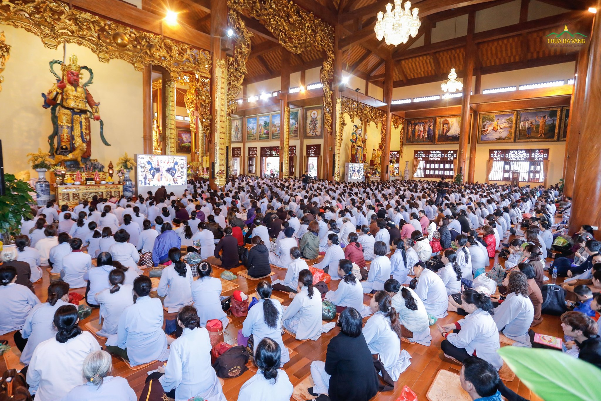 Cũng vào ngày 8/12/Kỷ Hợi (tức ngày 02/01/2020), hàng nghìn Phật tử ở khắp các tỉnh thành đã hân hoan về chùa Ba Vàng thọ trì Bát quan trai giới một ngày một đêm thanh tịnh.