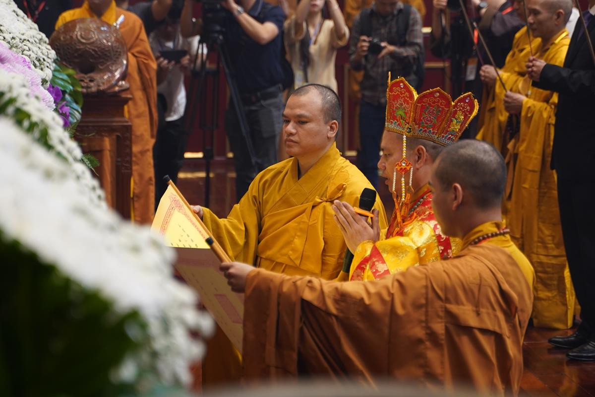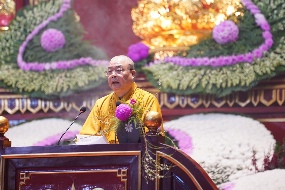 Hòa thượng Thích Thiện Nhơn thay mặt TƯGH đọc văn tưởng niệm Đức Sơ Tổ Điều Ngự Trần Nhân Tông, với tấm lòng thành: “Nguyện phụng trì Phật pháp, phát huy chân lý Đạo nhà, giữ gìn Tổ ấn vàng son, làm rạng rỡ vang danh Non thiêng Phật Tổ huy hoàng tráng lệ, non sông gấm vóc thiên thành, một cõi vững bền muôn thuở.