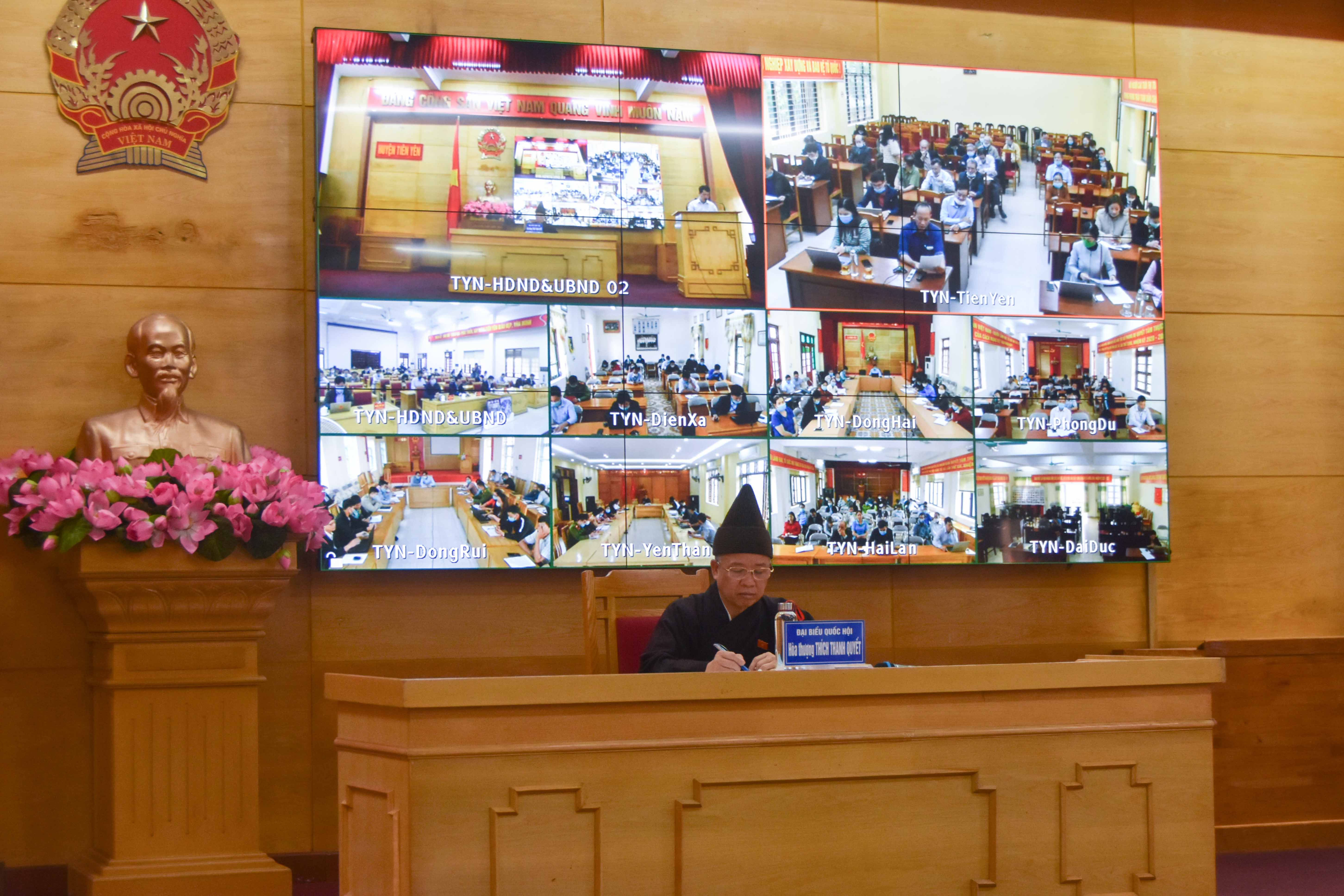 Huyện Tiên Yên tổ chức tiếp xúc cử tri theo hình thức trực tuyến, kết nối từ điểm chính tại hội trường UBND huyện tới trụ sở UBND của 11 xã, thị trấn.