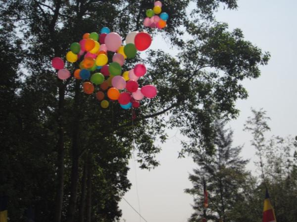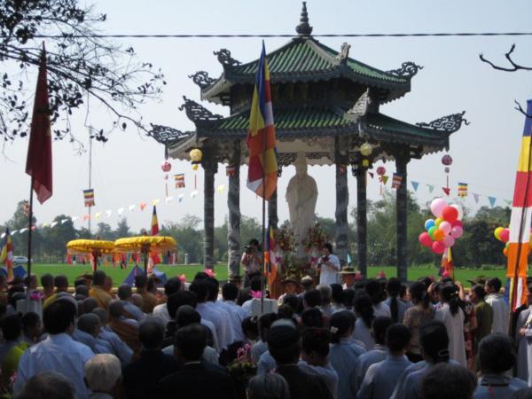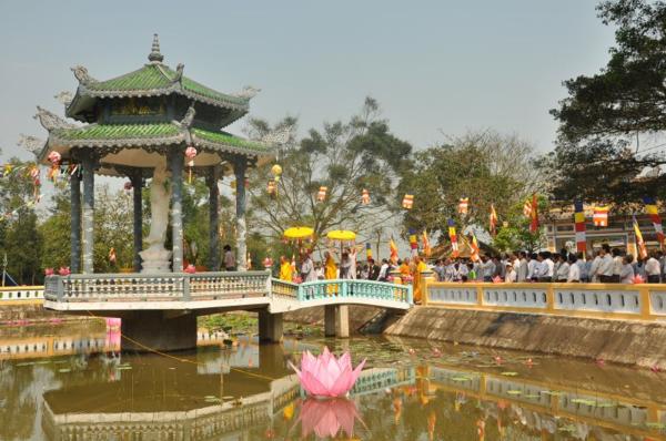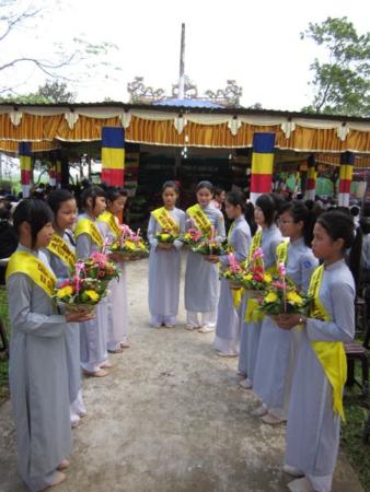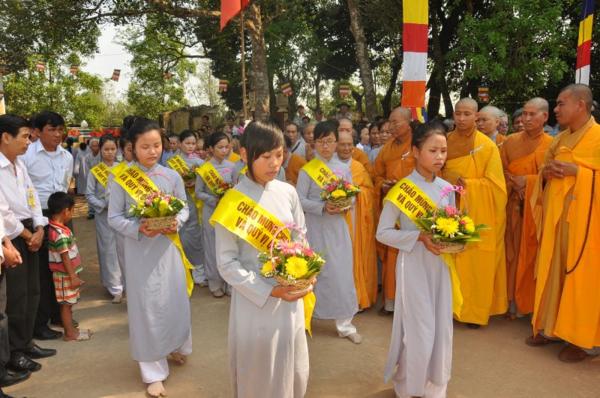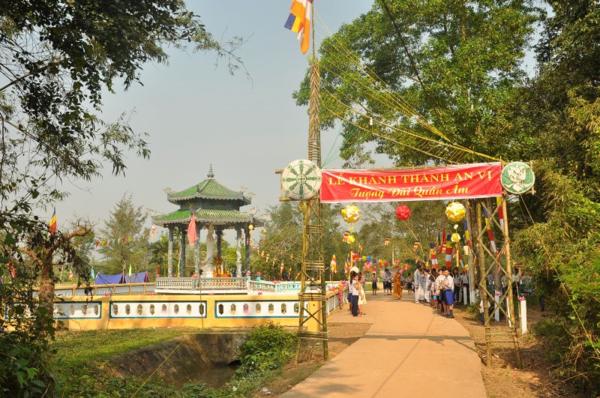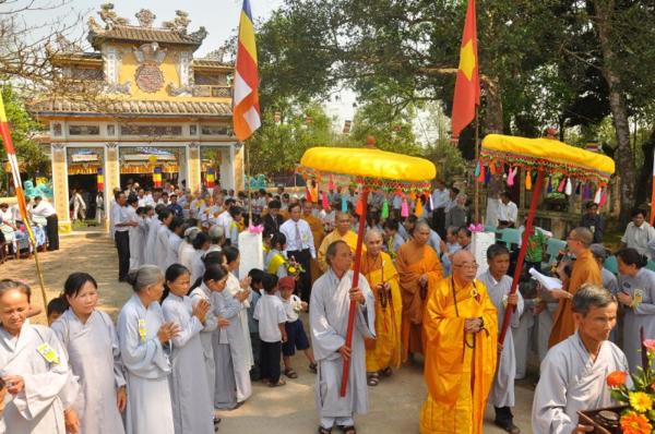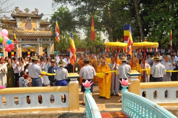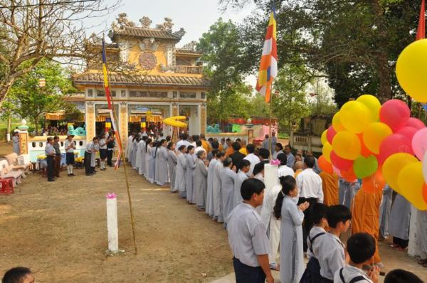 Sau nghi lễ hành chánh là phần cắt băng khánh thành và nghi thức an vị. Từng chùm bong bóng tung bay trên bầu trời Quảng Trị, hòa vào tiếng kinh du dương trầm bỗng, khiến lòng người tham dự ai ấy đều cảm nhận được sự hân hoan trong niềm tịnh lạc.