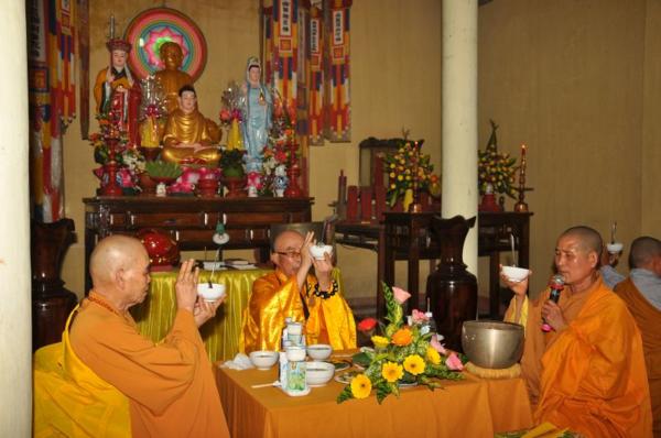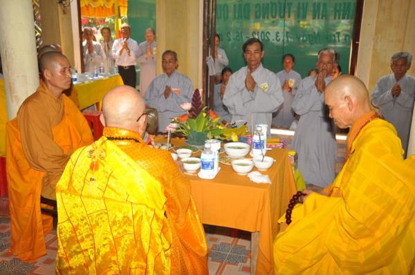 Nhân dịp này quý Phật tử cũng gieo duyên lành, thiết lễ cúng dường trai tăng đến chư tôn đức về dự lễ và phát quà khuyến học cho học sinh trong làng. Niềm vui tiếp nối niềm vui, buổi lễ hoàn mãn trong sự hoan hỷ của tất cả mọi người.