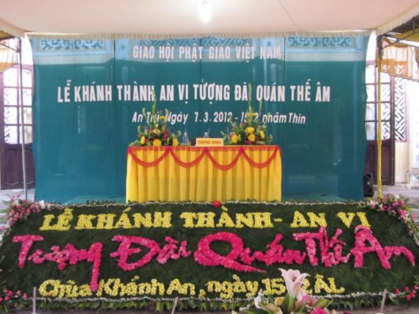 Ông Nguyễn Thanh Hoài – Chủ Tịch UBND xã Triệu Tài thay mặt chính quyền địa phương đã bày tỏ sự khích lệ và tán thành của chính quyền đối với hành động xây dựng tượng đài Bồ tát Quán Thế Âm của chùa Khánh An. Ông cho rằng công trình này hết sức ý nghĩa, vì có nơi cho Phật tử nguyện cầu bình an, đồng thời cũng góp phần tôn tạo cảnh quan cho cả làng.