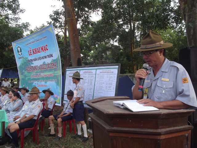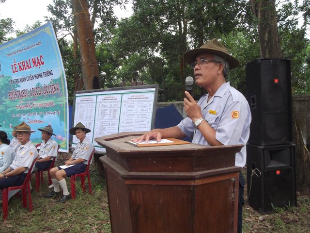 Sau lời phát biểu chào mừng của HTr cấp Tấn Hoàng Thúc Quyền – Trại trưởng Liên Trại,  huynh Trưởng cấp Tấn Hoàng Công Hiền – Trại Phó Huấn luyện đọc bản tổng kết trại.