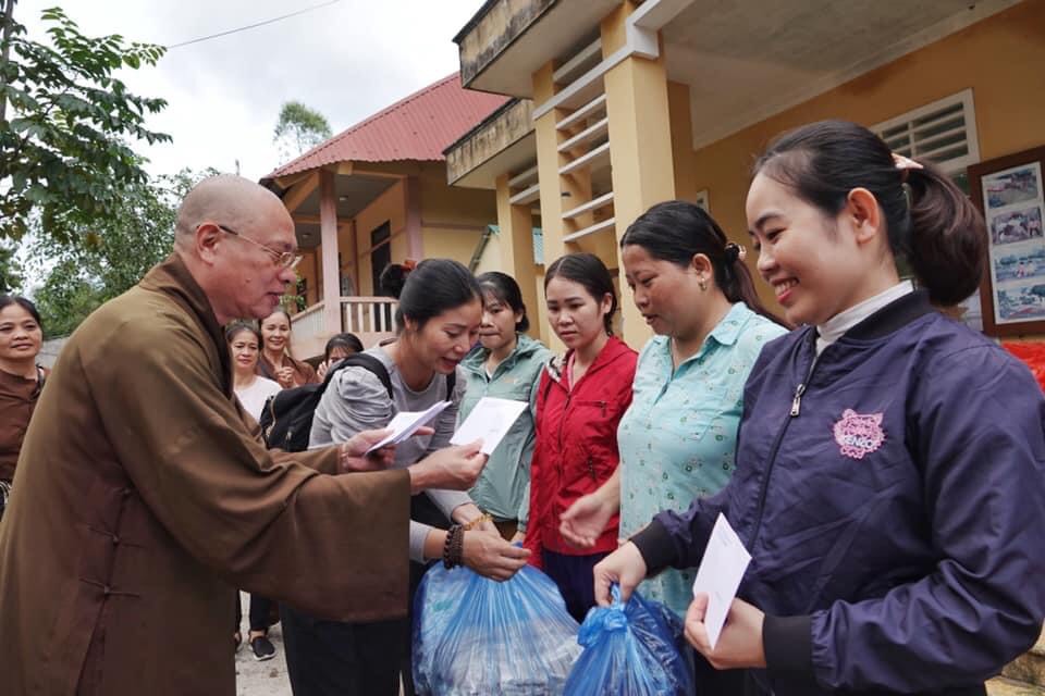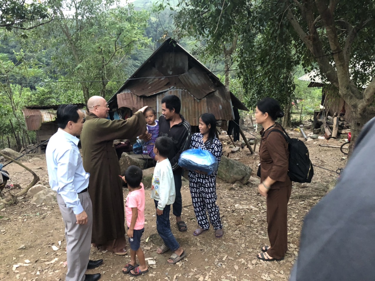 Hoà thượng trưởng phái đoàn chia sẻ: “ Ngoài hoạt động từ thiện tặng quà động viên, thăm hỏi bà con vùng cao thì đây cũng là dịp để bà con biết đến Đạo Phật, biết tới Phật giáo, cũng như nhận thức được tầm quan trọng của Phật giáo đối với vấn đề an sinh xã hội, HT cho biết thêm: rất đông bà con nơi đây lần đầu được thấy bóng dáng của Chư Tăng, Phật tử…”, Hoà thượng mong rằng trong thời gian tới sẽ có nhiều đoàn từ thiện Phật giáo tới thăm hỏi, động viên bà con nơi vùng biên, để bà con cảm thấy ấm lòng, không bị bỏ lại phía sau, sớm ổn định cuộc sống, tiếp tục tăng gia sản xuất, khắc phục thiệt hại sau lũ.