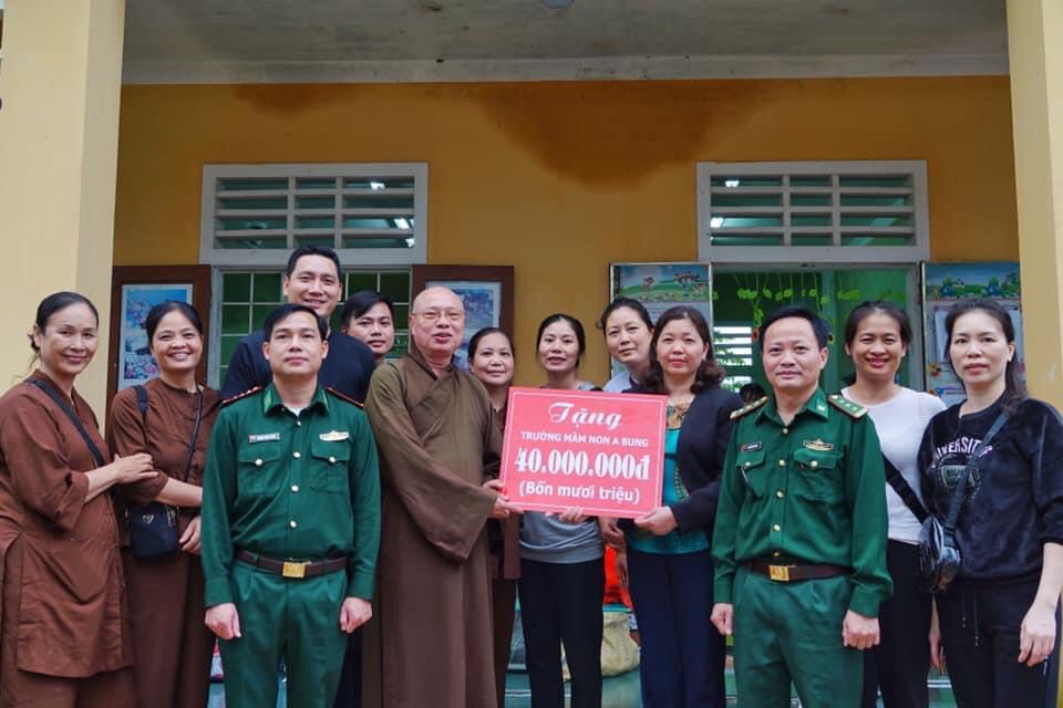 Ngoài ra, đoàn còn trao tặng quà cho các cháu học sinh đang học tập tại trường mầm non A Ngo, trường mầm non A Bung với tổng số tiền là 83 triệu đồng, mỗi trường được tặng 1 tạ gạo, 250 đôi dép và 40 triệu đồng tiền mặt để nhà trường mua sắm thiết bị học tập cho các cháu.
