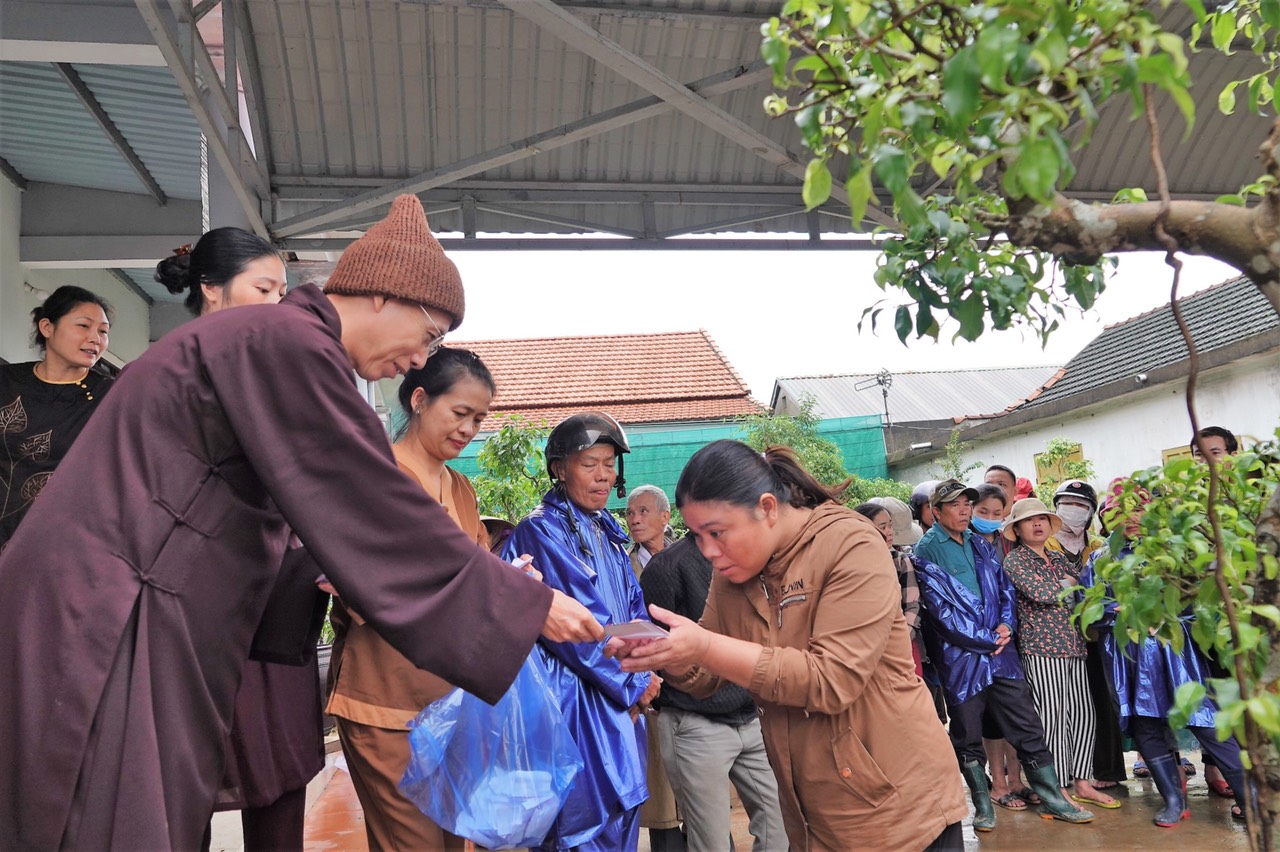 Đại đức Thích Trường Xuân tặng quà cho bà con vùng lũ tỉnh Quảng Trị đợt 1