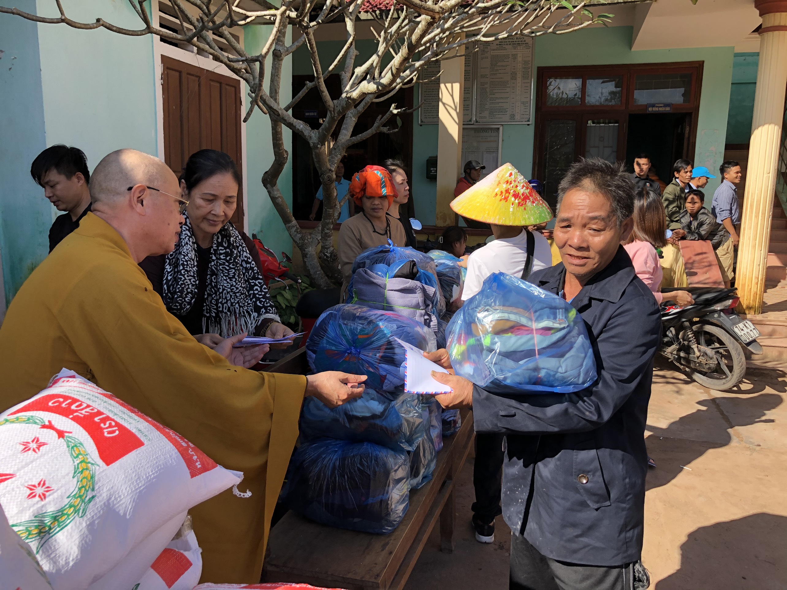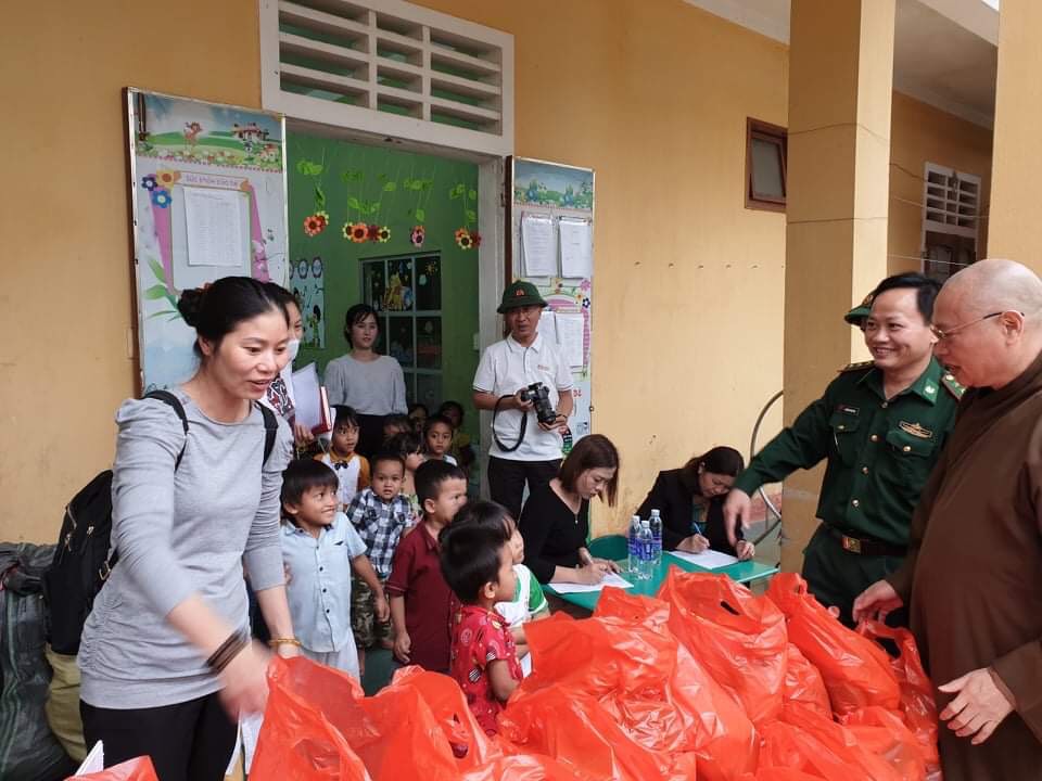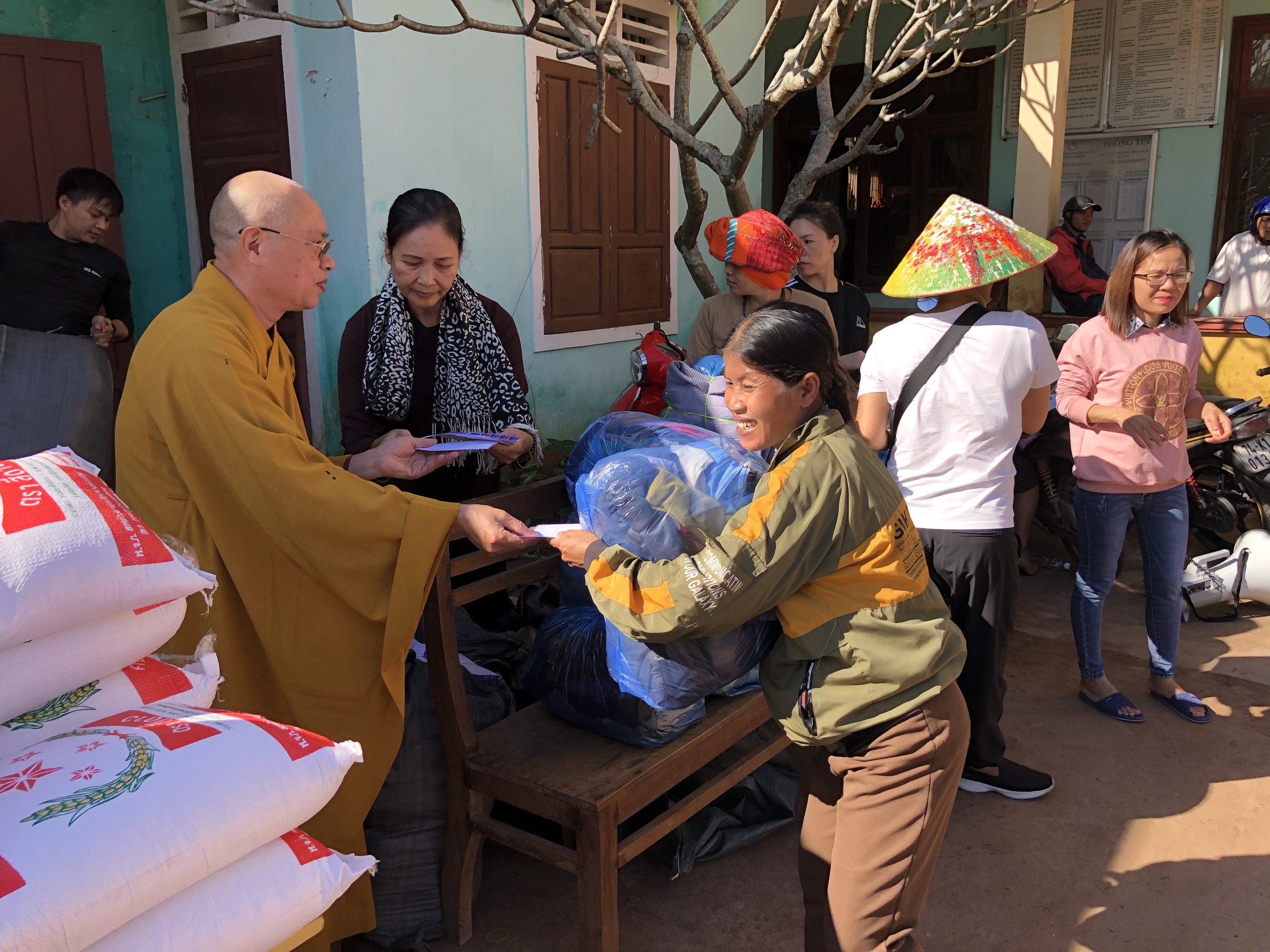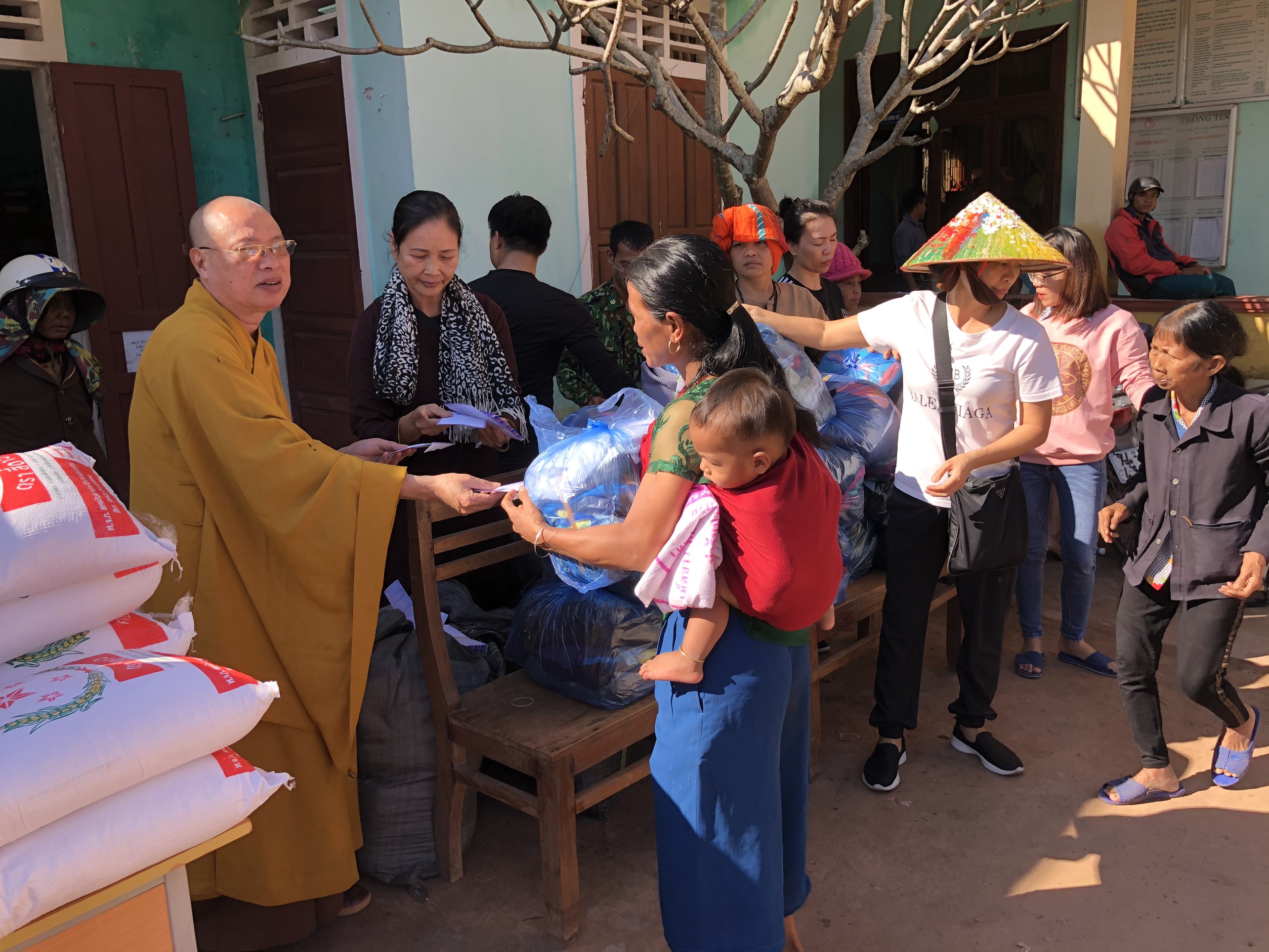 Đại đức Thích Trường Xuân tặng quà cho bà con vùng lũ tỉnh Quảng Trị đợt 1