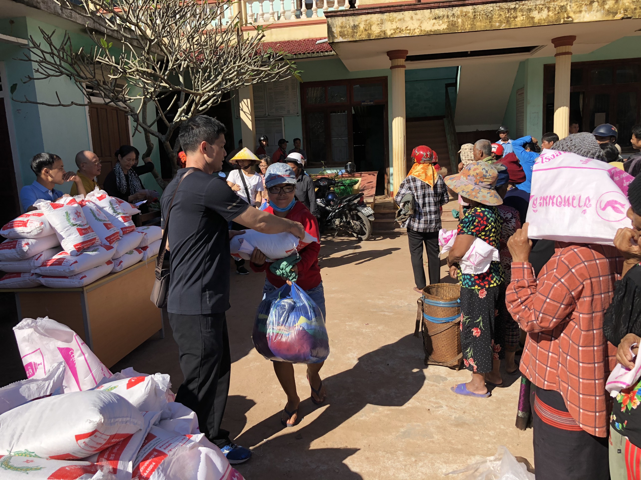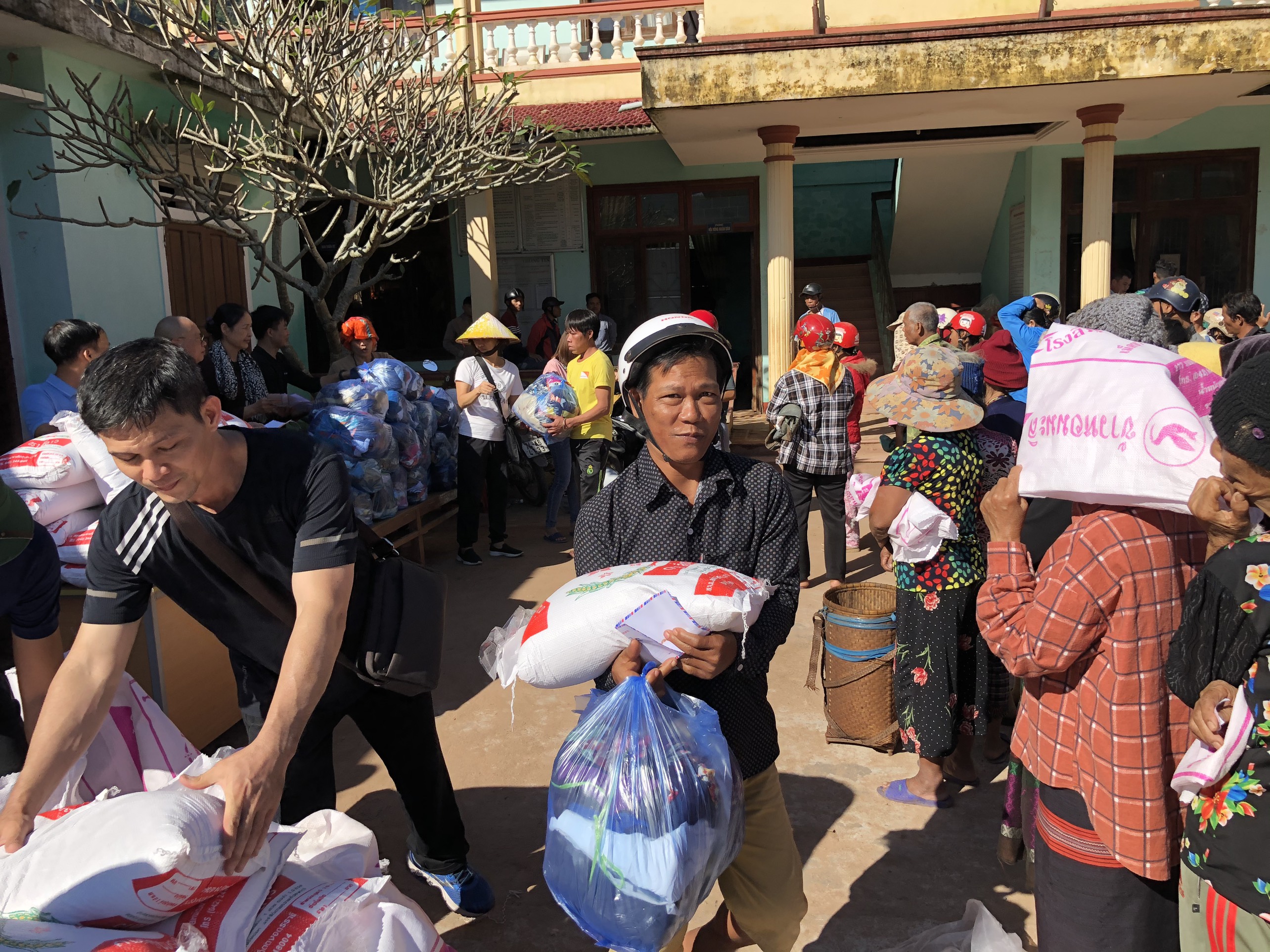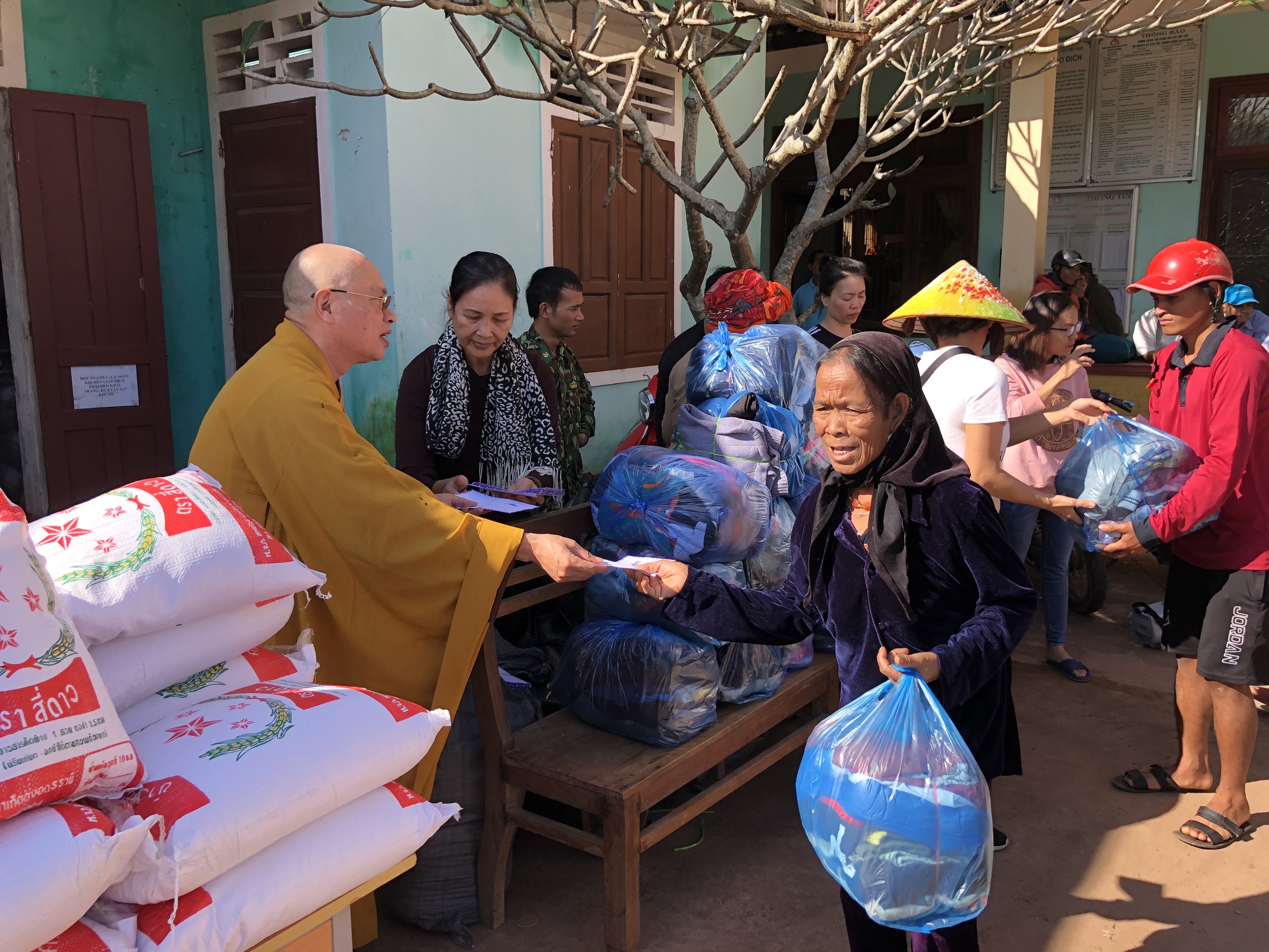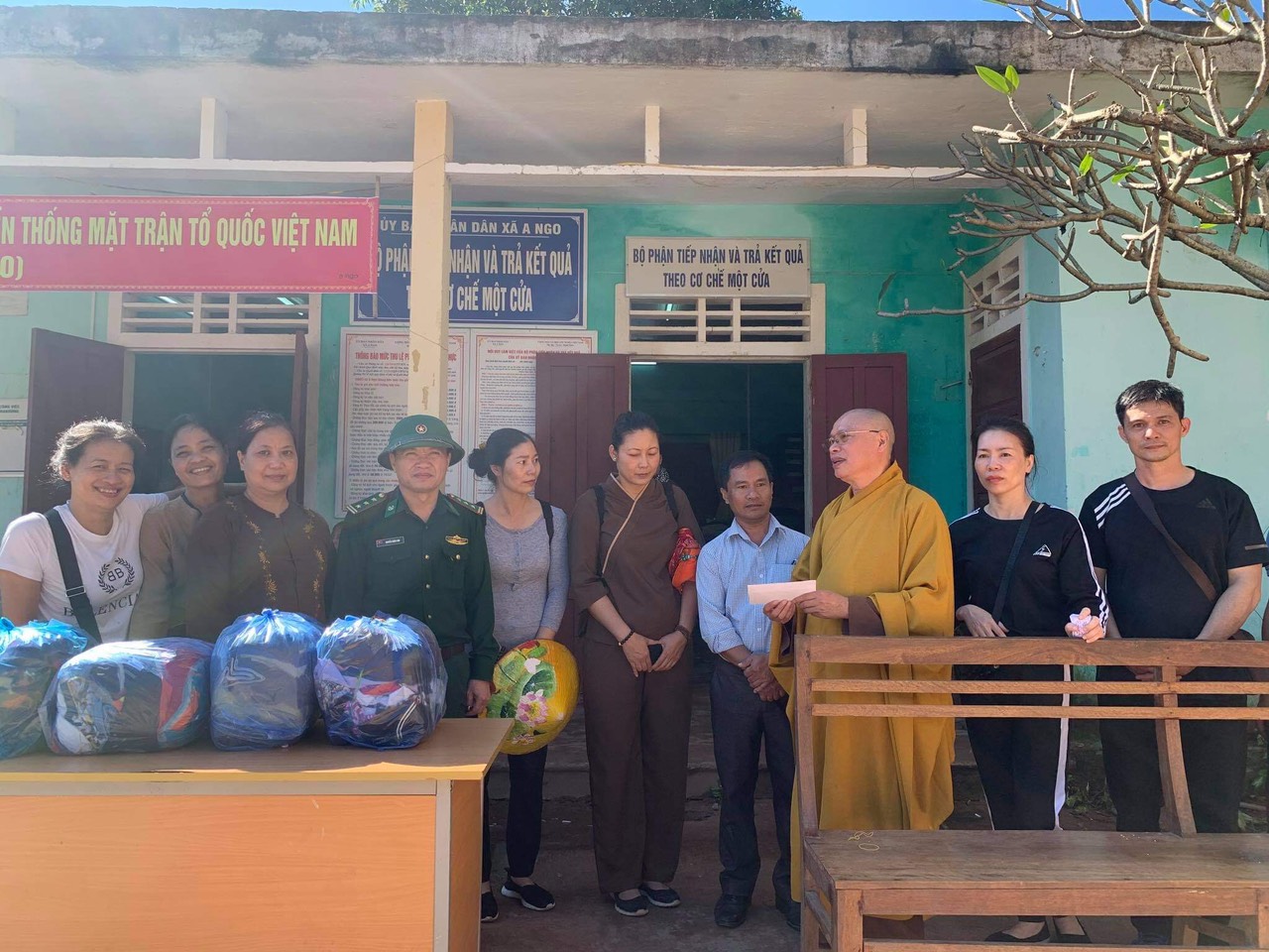 Đại đức Thích Trường Xuân tặng quà cho bà con vùng lũ tỉnh Quảng Trị đợt 1