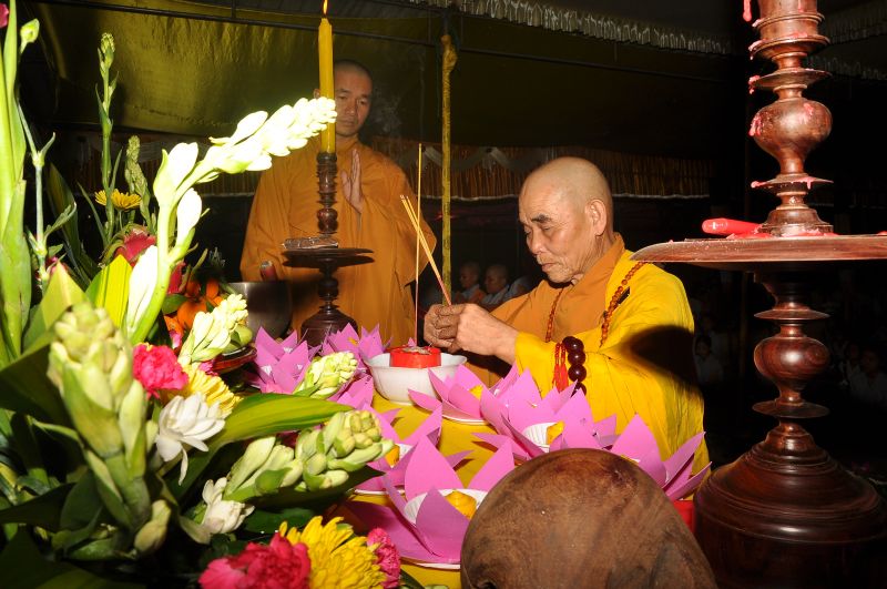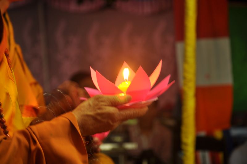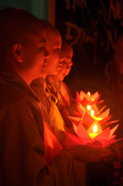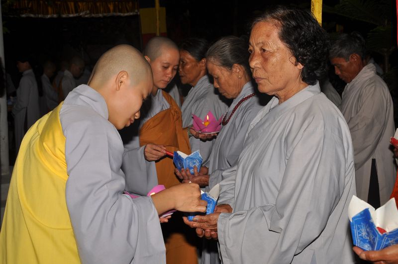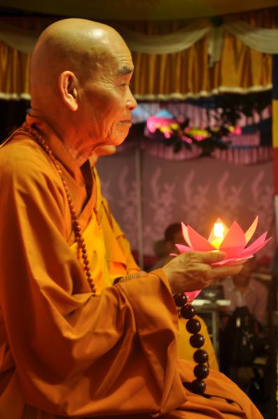 Sau nghi lễ cầu nguyện an bình là đến phần truyền đăng. Dưới sự điều phối của Đại đức Thích Từ Viên, từng ngọn nến trên tay mỗi người được chư tôn đức truyền trao ánh sáng trí tuệ tiếp nhận từ bàn Phật. Ánh nến lung linh ấy cứ tiếp tục truyền đi, truyền đi cho vùng sáng lan tỏa ra khắp mọi nơi.