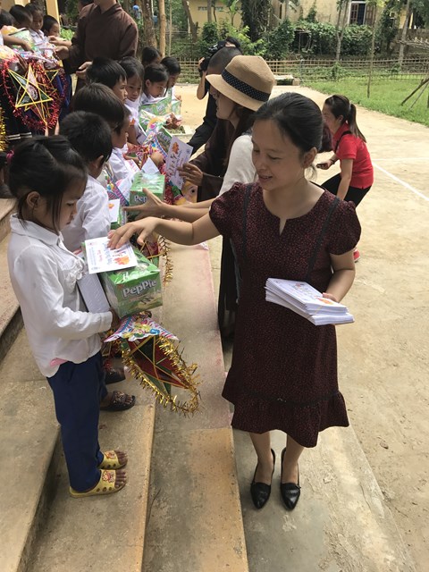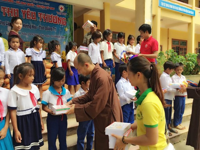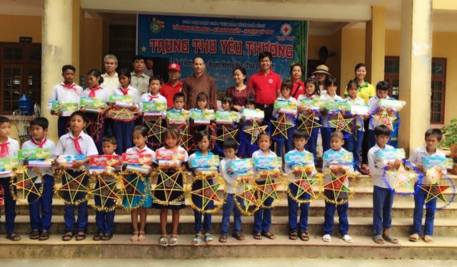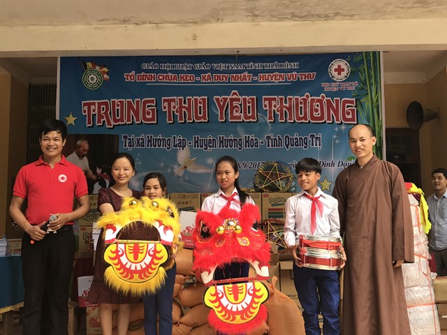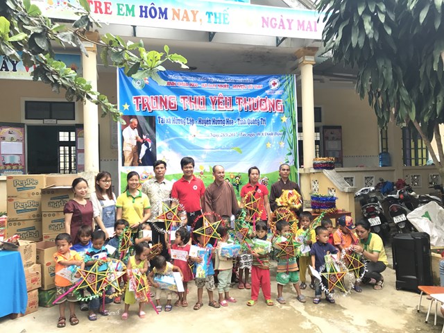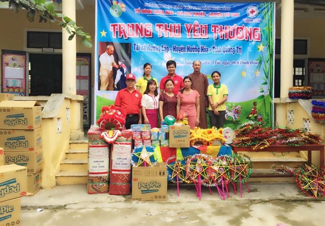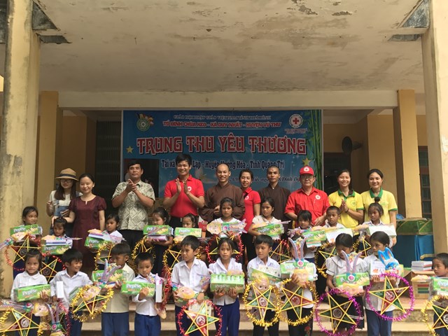 Đoàn đã tổ chức tặng quà trung thu cho các cháu thiếu niên nhi đồng thuộc trường Mầm Non, trường Dân tộc nội trú THCS và trường Tiểu Học xã Hướng Lập, huyện Hướng Hóa, tỉnh Quảng Trị. Tại đây, đoàn đã trao tặng 500 phần quà cho các em học sinh, mỗi phần quà trị giá hơn 200 ngàn đồng. Bao gồm: Bánh trung thu, đèn ông sao, măt nạ, 10 cuốn vở viết và 100 ngàn đồng tiền mặt. Đồng thời, trao tặng cho trường Mầm Non xã Hướng Lập 4 thùng bánh kẹo 3 đầu lân để Ban giám hiệu nhà trường tổ chức “ Đêm Hội Trăng Rằm” cho các em. Ngoài ra, đoàn còn trao tặng 25 chiếu cho nhà trường Mầm Non.