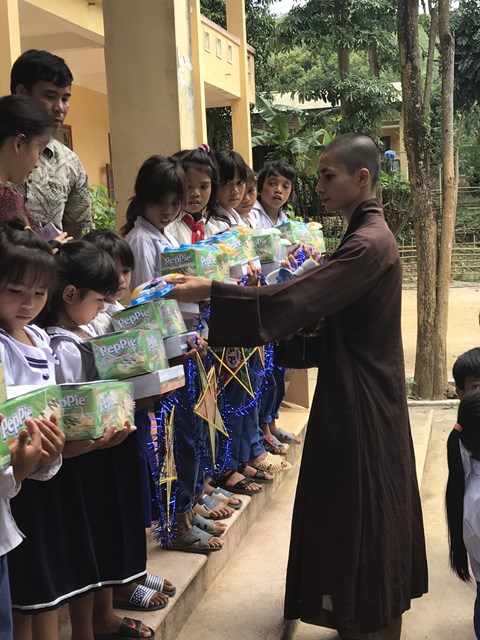 Tại trường Dân tộc nội trú THCS và Tiều Học, đoàn cũng đã trao tặng 3 tạ gạo, 2 thùng mỳ chính, 2 thùng nước mắm, 2 thùng bột canh, 2 thùng dầu ăn, 2 đầu lân, 2 chiếc trống và 40 hộp bánh để các em học sinh vui đón tết trung thu cổ truyền năm Đinh Dậu tại trường với tổng kinh phí của chuyến đi từ thiện lên tới trên 125 triệu đồng.