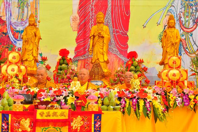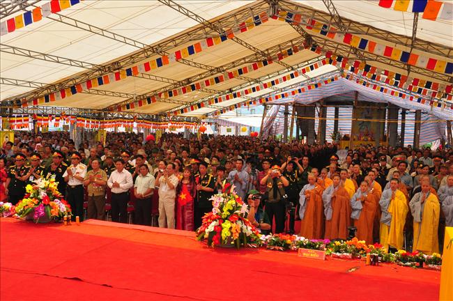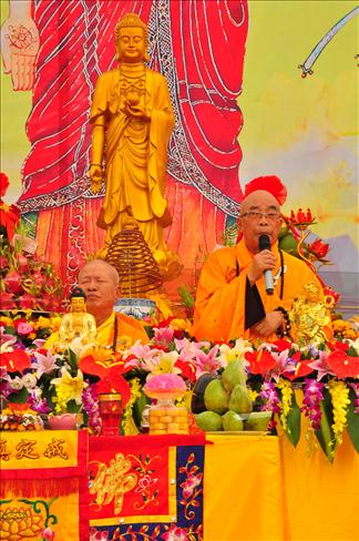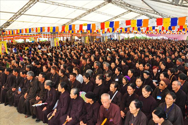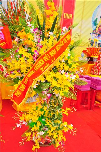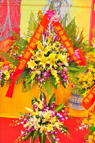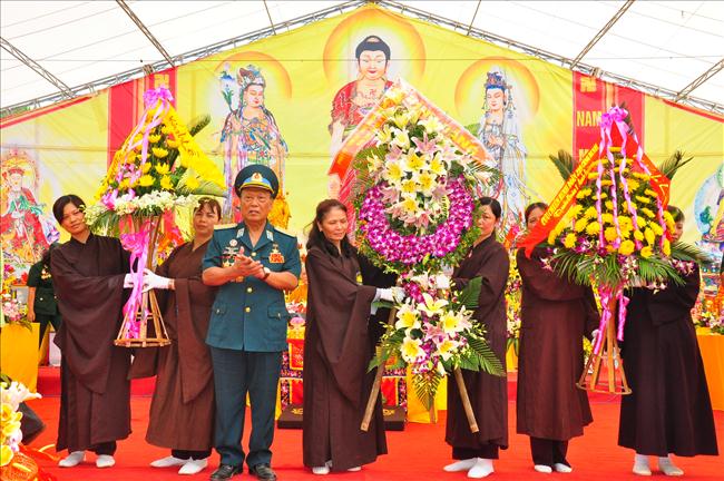 Pháp hội cũng vô cùng hoan hỷ được đón nhận những lẵng hoa của Tổng bí thư Nguyễn Phú Trọng, nguyên tổng bí thư Lê Khả Phiêu, phó chủ tịch nước Nguyễn Thị Doan.