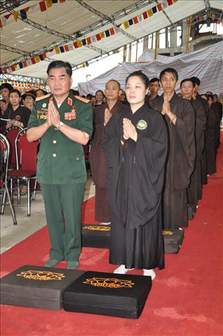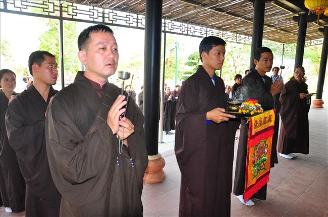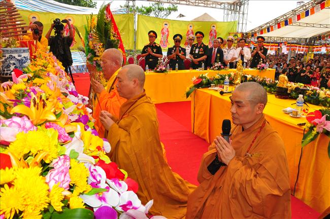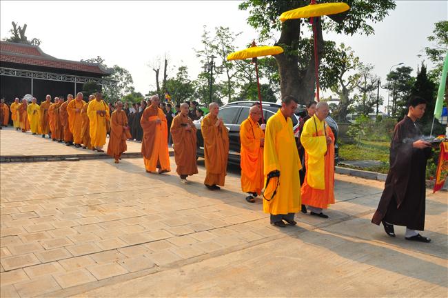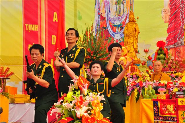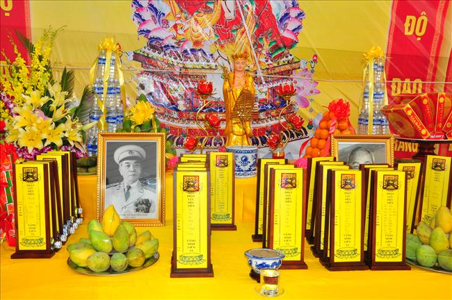 6h sáng, nghi thức cung rước các bài vị, di ảnh của chủ tịch Hồ Chí Minh và đại tướng Võ Nguyên Giáp lên lễ đài đã được chư Tăng, tướng lĩnh và Phật tử thực hiện.