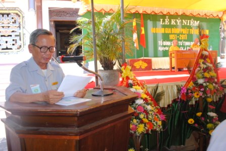 Tại buổi lễ, huynh trưởng Thiện Điều Nguyễn Thắng Nhu thay mặt Ban Hướng dẫn TW GĐPT đọc diễn văn chào mừng; huynh trưởng Tâm Ấn Hoàng Thúc Quyền – Phó TTPBHDGĐPT Quảng Trị đọc báo cáo các thành tựu về Phật sự của GĐPT Việt Nam trong 60 năm qua; Huynh trưởng Hoàng Công Hiền – Phó PBHDGĐPT Quảng Trị đọc báo cáo Phật sự của GĐPT Quảng Trị. Ni sư Thích Nữ Như Minh – Phó Ban từ thiện PG Thừa Thiên Huế, trú trì chùa Tây Linh – Huế đại diện cho Cựu huynh trưởng đoàn sinh phát biểu cảm niệm.