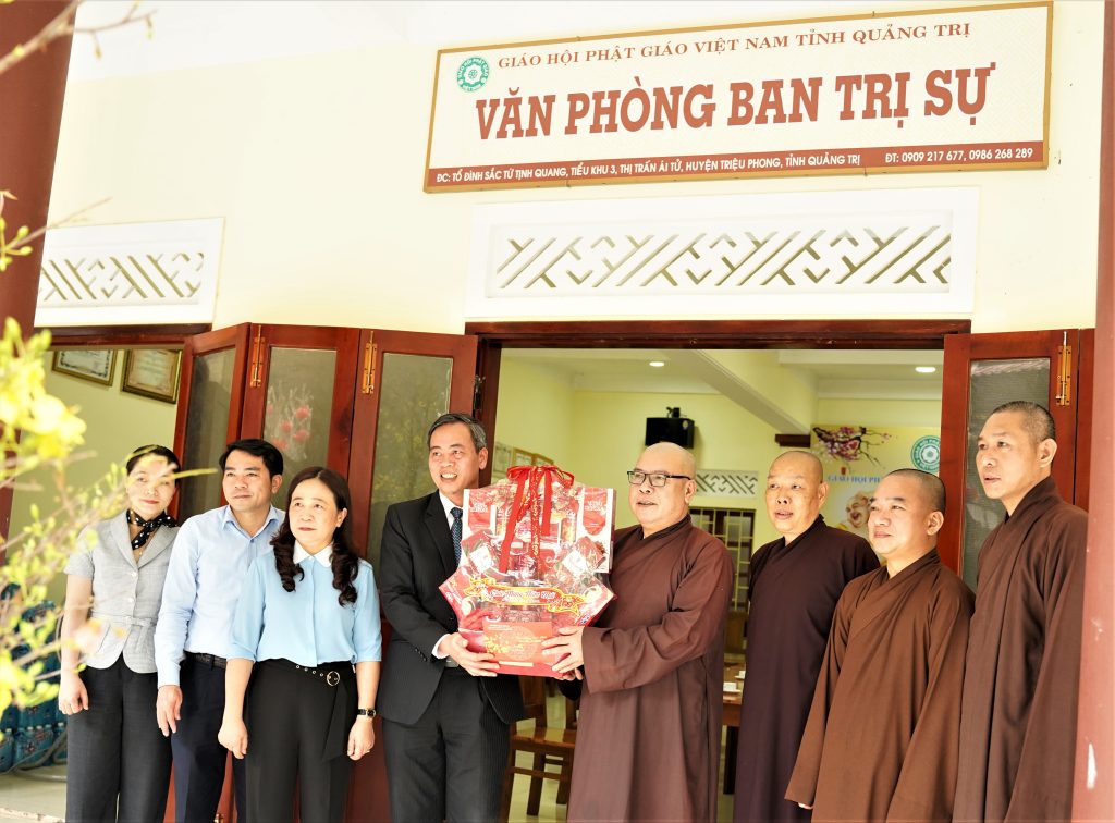 Nhân dịp Tết Nguyên đán Giáp Thìn – 2024, sáng 05/2/2024, tại Văn phòng Ban Trị sự GHPGVN tỉnh Quảng Trị (tiểu khu 3, thị trấn Ái Tử, huyện Triệu Phong), Phái đoàn Tỉnh ủy do ông Nguyễn Đăng Quang – Phó Bí thư Thường trực Tỉnh ủy, Chủ tịch HĐND tỉnh làm Trưởng Đoàn đến thăm, chúc Tết Ban Trị sự GHPGVN tỉnh; cùng đi có bà Lê Thị Lan Hương – Uỷ viên Ban Thường vụ, Trưởng ban Dân vận Tỉnh ủy viên và đại diện các cơ quan liên quan.