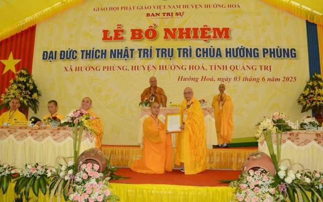 Sáng ngày 03-6-2025, trong không khí trang nghiêm và thanh tịnh, Lễ Bổ nhiệm Đại đức Thích Nhật Trí đảm nhiệm chức vị Trụ trì chùa Hướng Phùng (thôn Đại Độ, xã Hướng Phùng, huyện Hướng Hóa, tỉnh Quảng Trị) đã được long trọng cử hành.