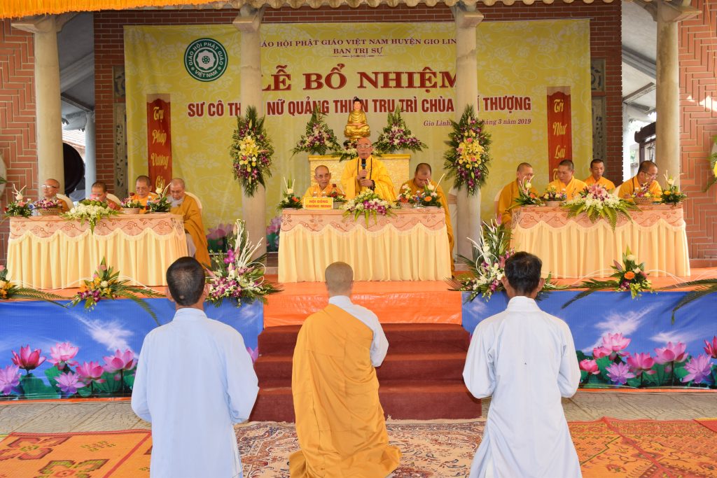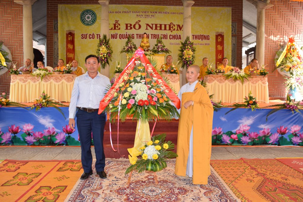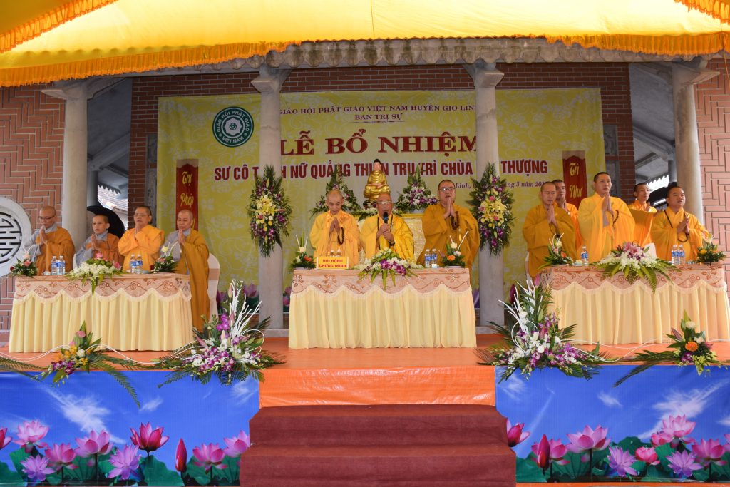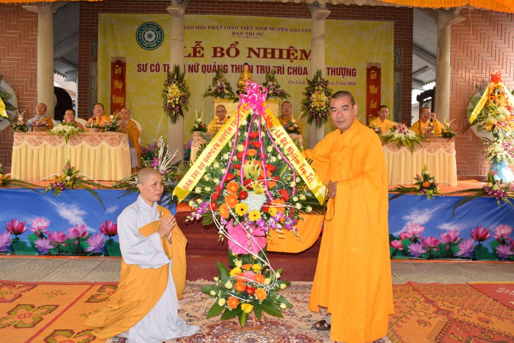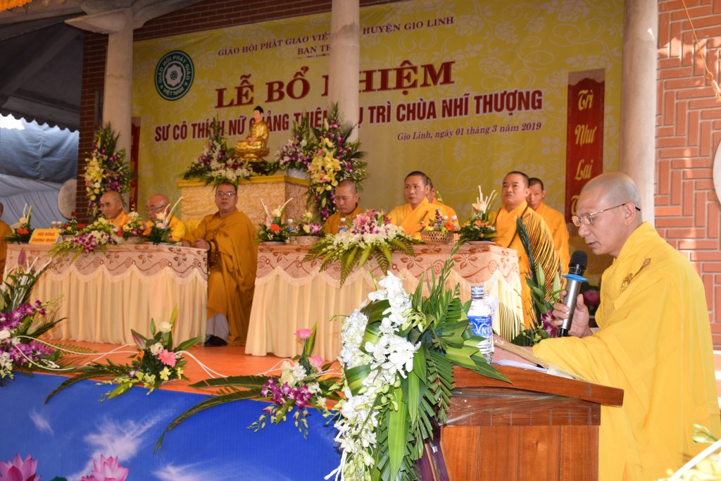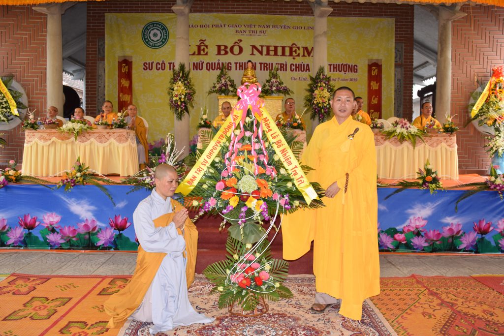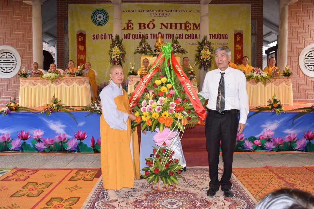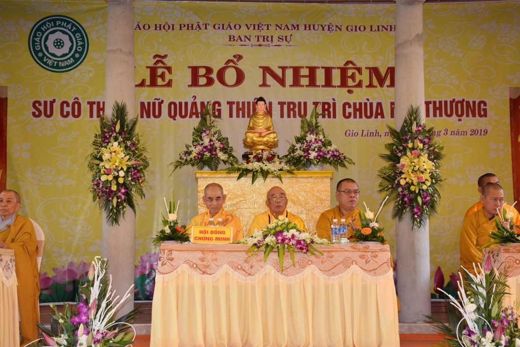 Sáng ngày 01/3/2019 (25/01 Kỷ Hợi), BTS GHPGVN huyện Gio Linh phối hợp với Ban Hộ tự niệm Phật đường Nhĩ Thượng đã trọng thể tổ chức lễ Bổ nhiệm Sư cô Thích Nữ Quảng Thiện trụ trì chùa Nhĩ Thượng, xã Gio Mỹ, huyện Gio Linh, tỉnh Quảng Trị.