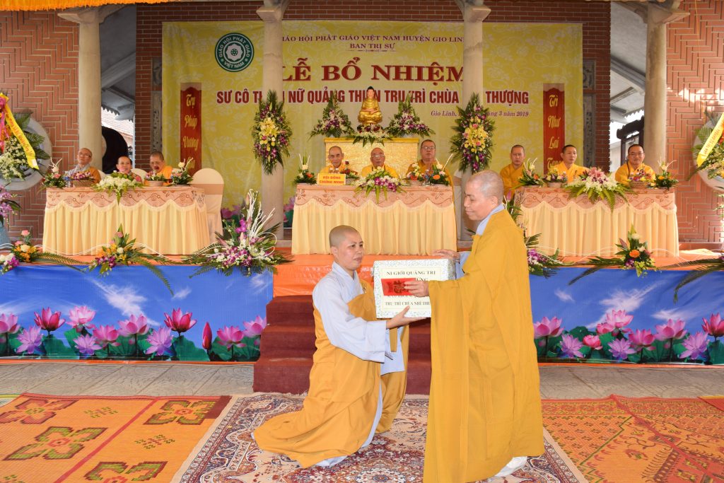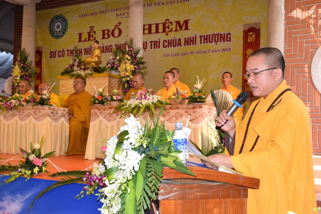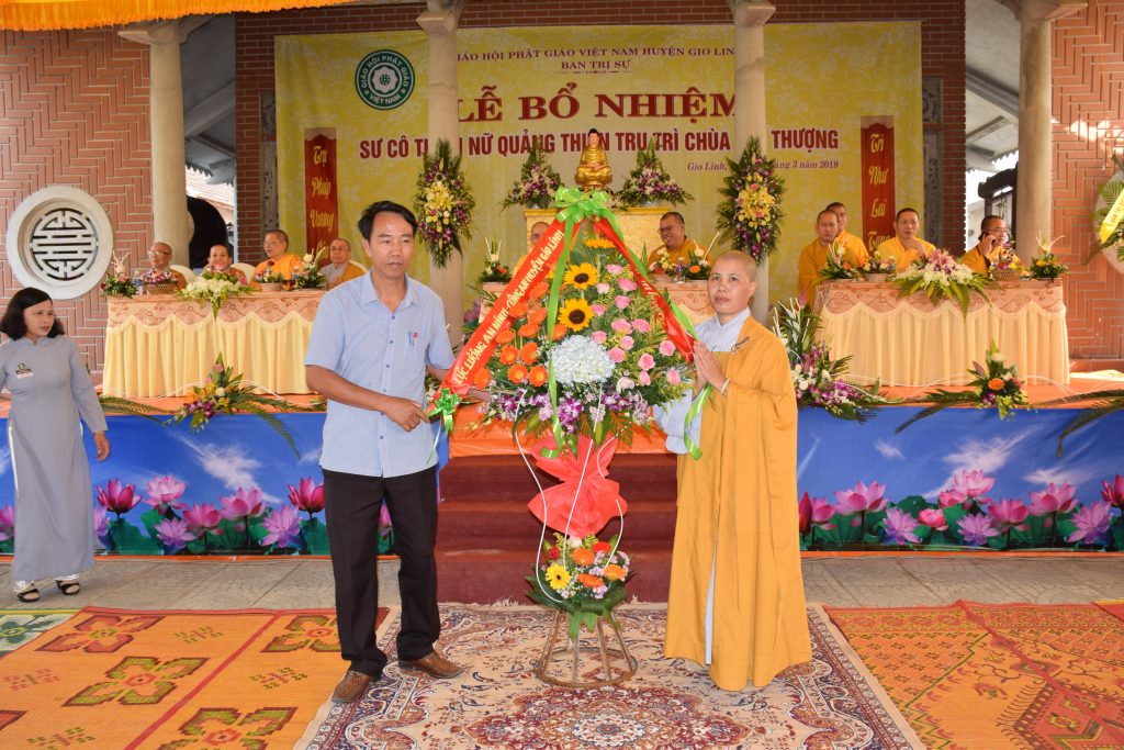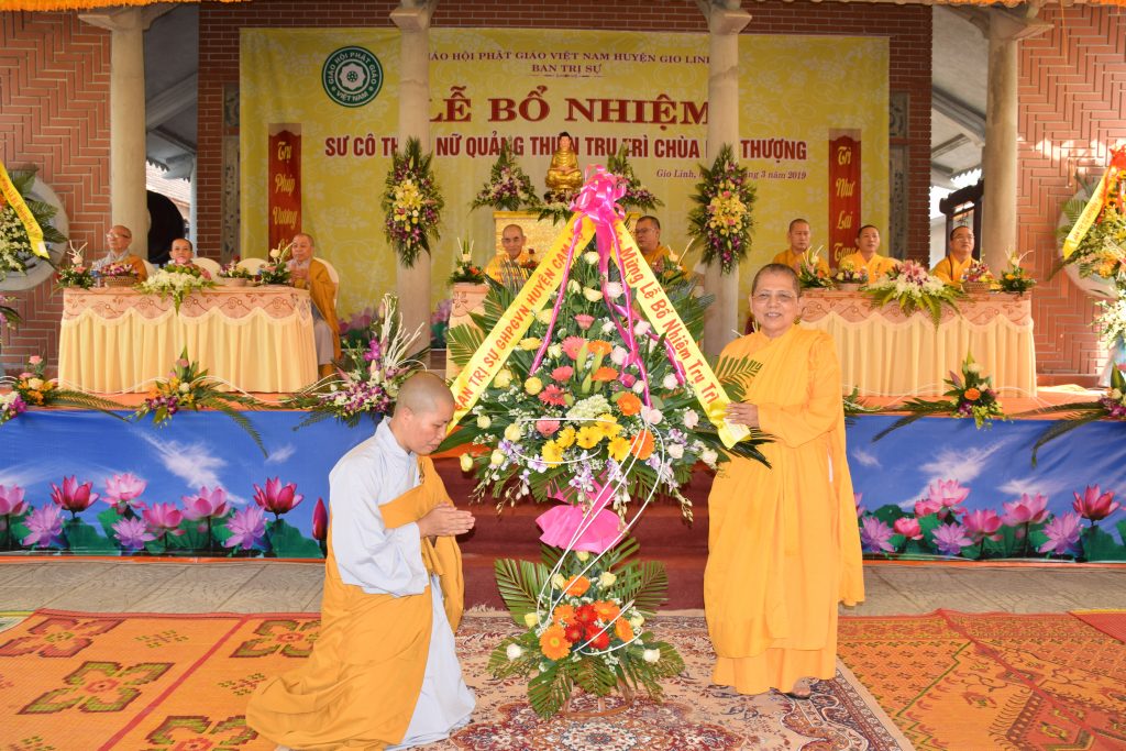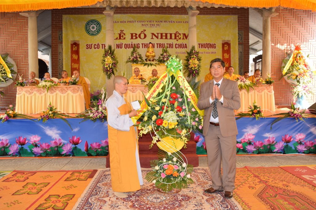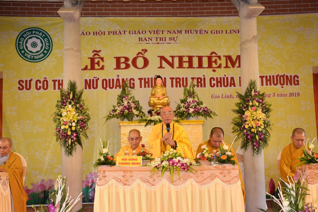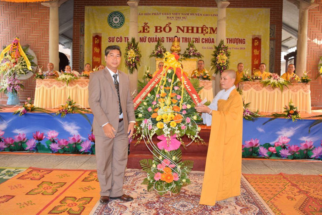 Sáng ngày 01/3/2019 (25/01 Kỷ Hợi), BTS GHPGVN huyện Gio Linh phối hợp với Ban Hộ tự niệm Phật đường Nhĩ Thượng đã trọng thể tổ chức lễ Bổ nhiệm Sư cô Thích Nữ Quảng Thiện trụ trì chùa Nhĩ Thượng, xã Gio Mỹ, huyện Gio Linh, tỉnh Quảng Trị.