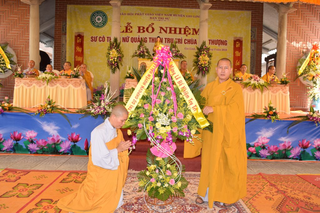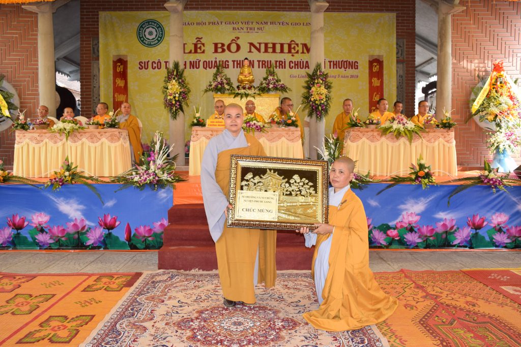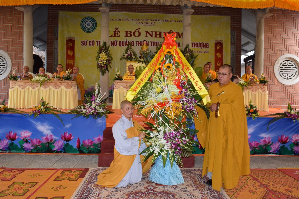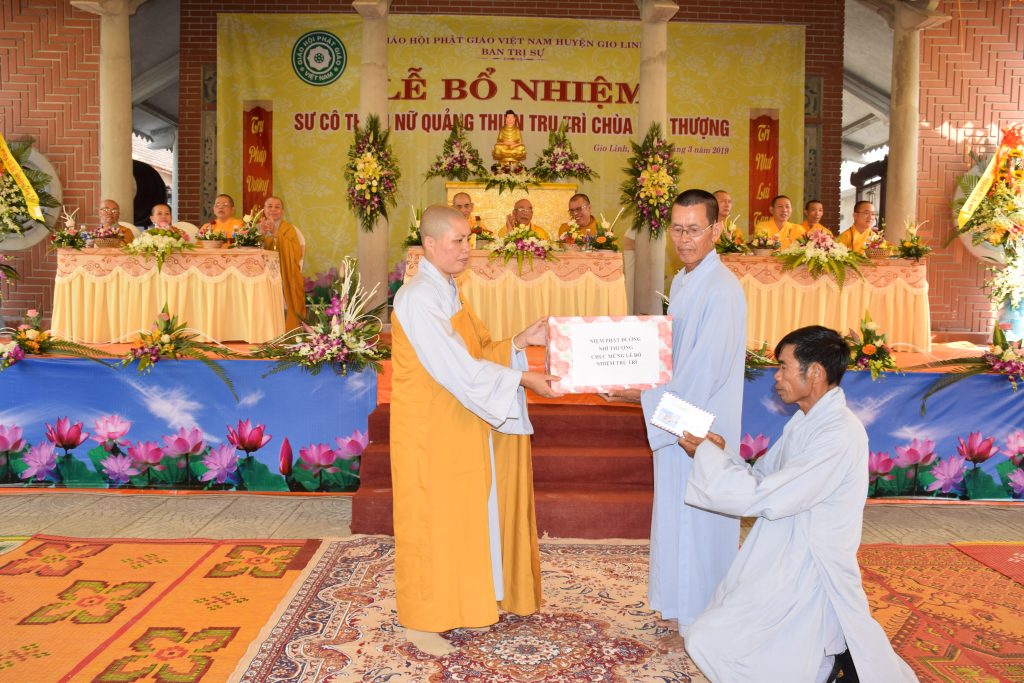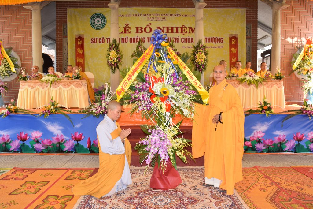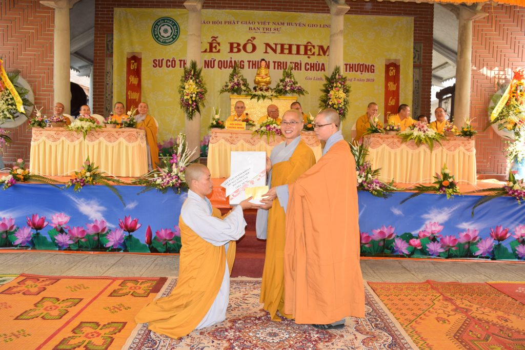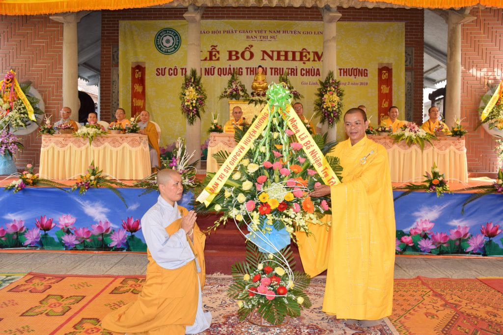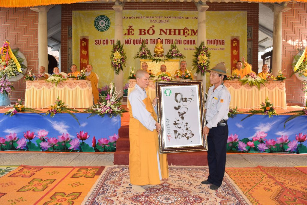 Sáng ngày 01/3/2019 (25/01 Kỷ Hợi), BTS GHPGVN huyện Gio Linh phối hợp với Ban Hộ tự niệm Phật đường Nhĩ Thượng đã trọng thể tổ chức lễ Bổ nhiệm Sư cô Thích Nữ Quảng Thiện trụ trì chùa Nhĩ Thượng, xã Gio Mỹ, huyện Gio Linh, tỉnh Quảng Trị.