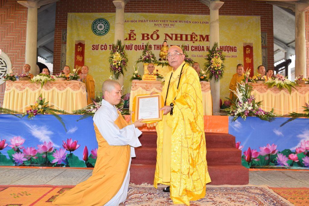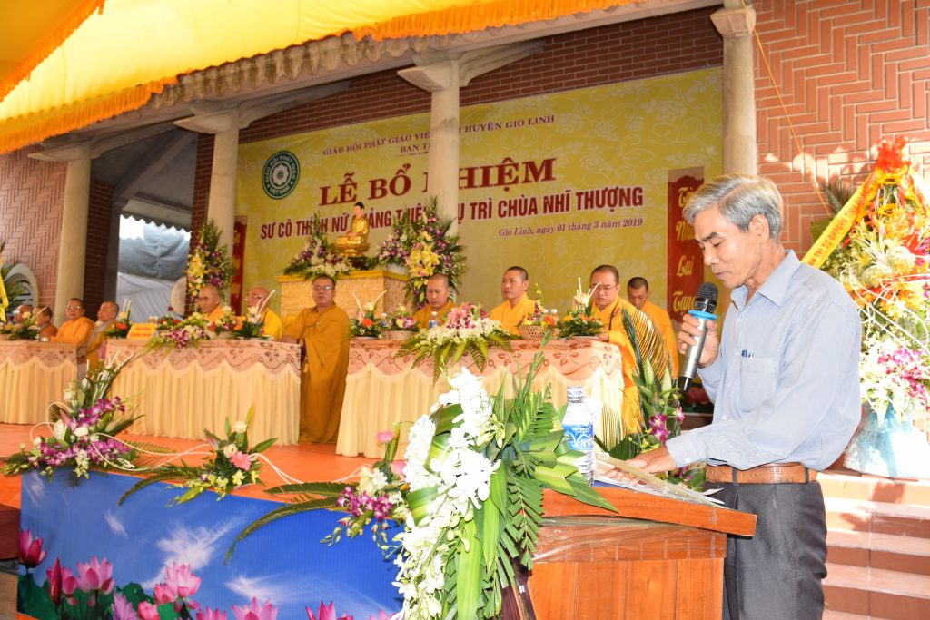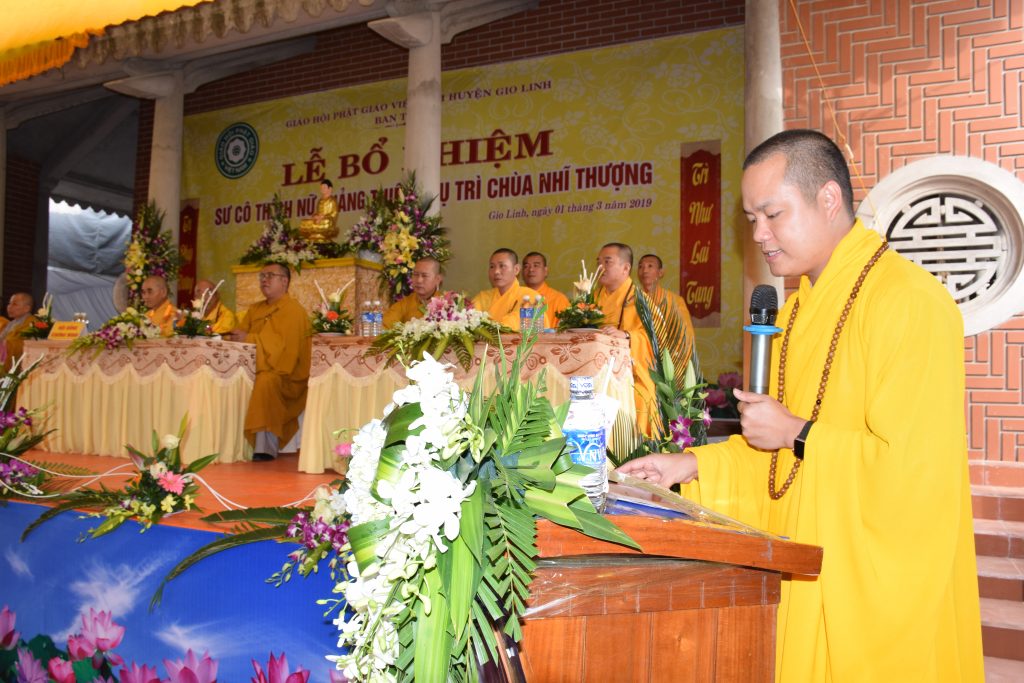 Cung kính đón nhận Quyết định từ Hòa thượng Trưởng BTS GHPGVN tỉnh, Sư cô tân trụ trì bồi hồi xúc động nghĩ về 2 đấng sanh thành, xin hướng vọng về Ni trưởng Bổn sư Ni viện Phước Long Q.9, TPHCM bậc thầy khả kính đã nuôi dưỡng cho Sư cô giới thân huệ mạng; Sư cô xin đê đầu đãnh lễ tri ân chư Tôn đức lãnh đạo Giáo hội Phật giáo tỉnh Quảng Trị, đặc biệt là sự chỉ dẫn của BTS GHPGVN huyện Gio Linh; xin chân thành cảm ơn sự quan tâm tạo điều kiện của các cấp chính quyền trong thời gian qua.