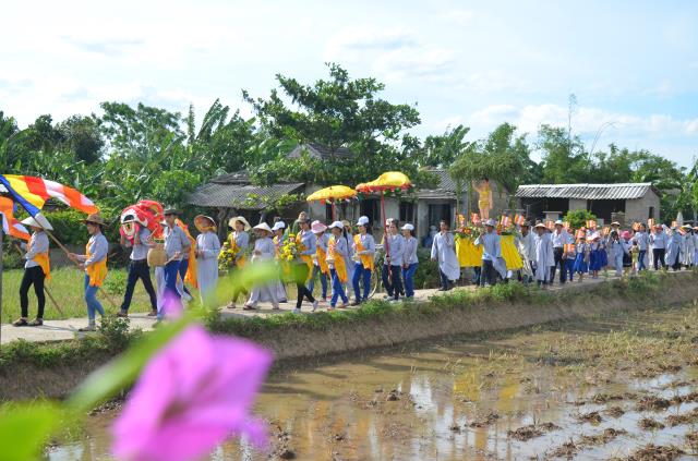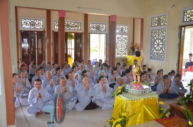 Trong suốt hơn 3 giờ rước kiệu đức Phật sơ sinh diễu hành khắp làng, rất nhiều gia đình Phật tử đã lập bàn hương án để quý sư cô tụng kinh cầu nguyện an lành. Điều này có thể thấy, đa số người dân trong vùng đều là những người thuần tín, có tấm lòng hướng về Tam bảo.