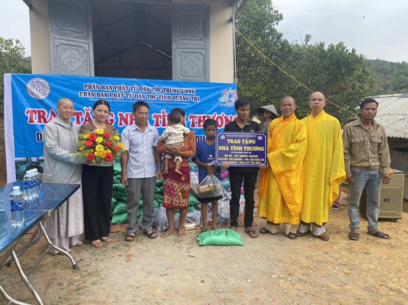 Ngày 26/3/2024 (17/02 Giáp Thìn) Phân ban Hướng dẫn Phật tử dân tộc (HD PTDT) TƯ cùng Phân ban HD PTDT tỉnh Quảng Trị, BTS GHPGVN tỉnh Quảng Trị trao nhà tình thương cho hộ gia đình Hồ Văn Lê và Hồ Thị Nang dân tộc Vân Kiều tại thôn Ruộng xã Hướng Tân huyện Hướng Hoá tỉnh Quảng Trị.