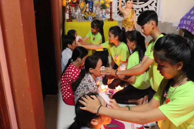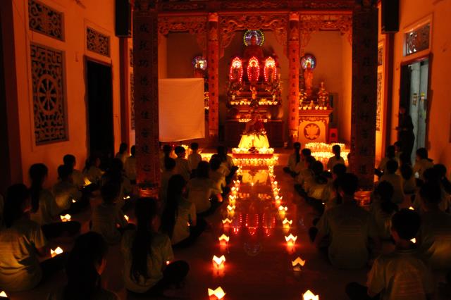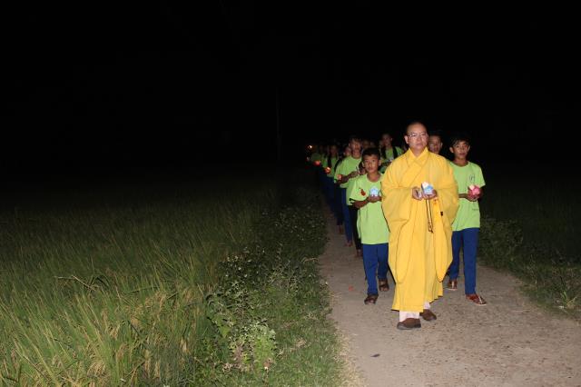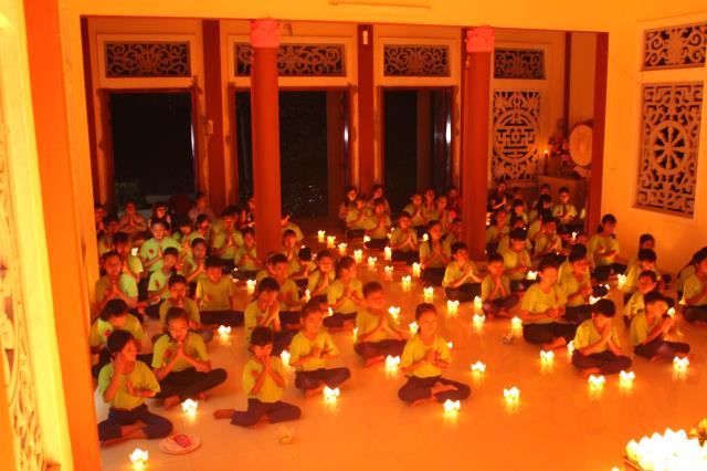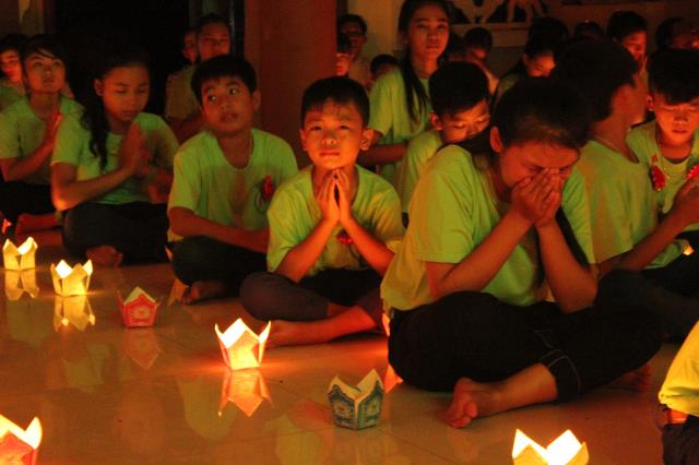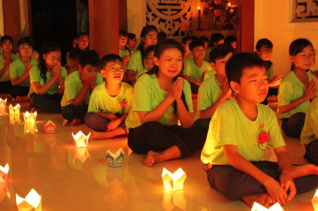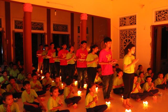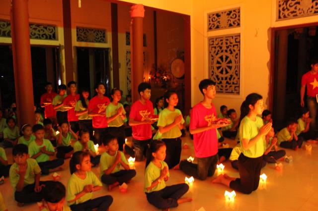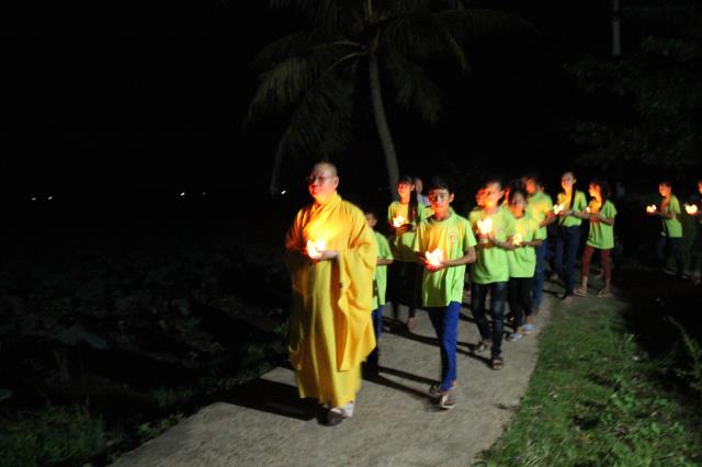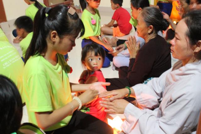 Chứng minh và tham dự đêm hội hoa đăng có sự hiện diện của ĐĐ. Thích Hải Trung, trụ trì chùa Liên Trì, TP. Buôn Ma Thuột, tỉnh Đắc Lắc, giảng sư, chứng minh khóa tu cùng sự hiện diện của quý Phật tử, quý phụ huynh, các bạn tình nguyện viên và các em khóa sinh trong khóa tu báo hiếu.