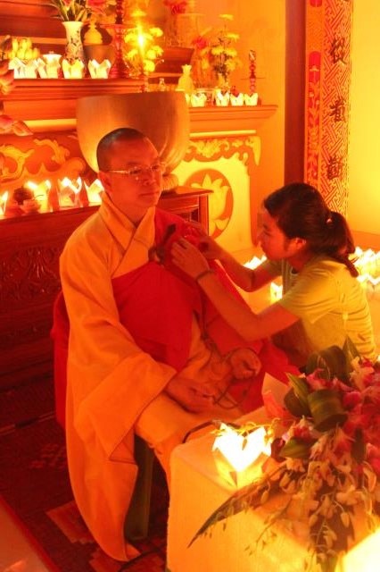 Nghi lễ truyền đăng cũng được Đại đức chứng minh thực hiện trong trang nghiêm thanh tịnh. Từng ngọn nến được thắp sáng và truyền đi, như dòng máu trong tim cũng đang dần lan tỏa. Công cha nghĩa mẹ được nhắc lại như một kỷ niệm êm đềm về một thời nằm nôi của tất cả chúng ta. Nhiều khóa sinh đã bật khóc cho những lỗi lầm đã gây tạo với hai đấng song đường, cũng có bạn nghẹn ngào vì mình đã mất đi bầu trời hạnh phúc.