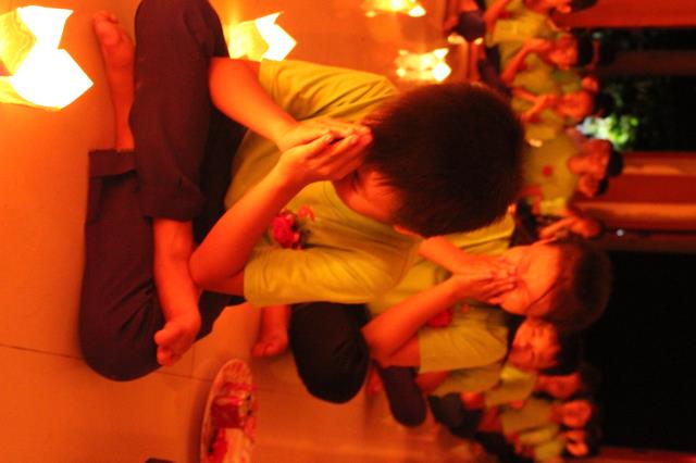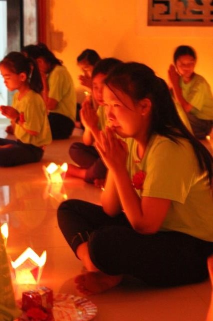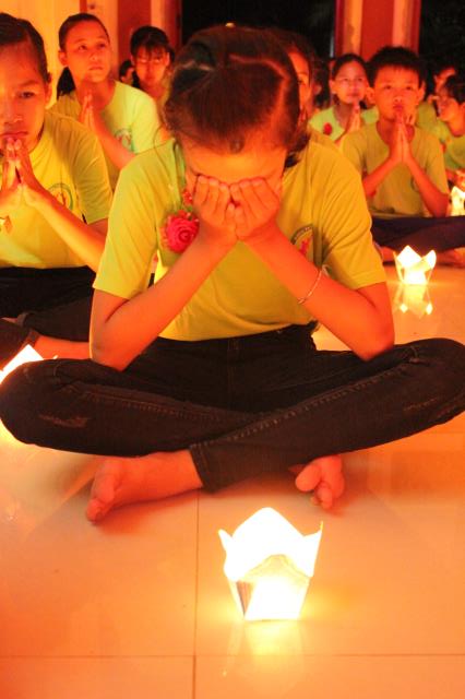 Từng ngọn nến được thắp sáng và truyền đi, như dòng máu trong tim cũng đang dần lan tỏa. Công cha nghĩa mẹ được nhắc lại như một kỷ niệm êm đềm về một thời nằm nôi của tất cả chúng ta. Nhiều khóa sinh đã bật khóc cho những lỗi lầm đã gây tạo với hai đấng song đường, cũng có bạn nghẹn ngào vì mình đã mất đi bầu trời hạnh phúc.Tối 3/9/2016, BTC khóa tu báo hiếu tại chùa Xuân Thành đã giúp các bạn trẻ gián tiếp nói lời tri ân cha mẹ bằng đêm đốt nến, dâng trà thiêng liêng.