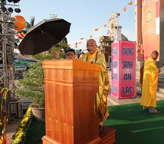 Tại buổi lễ, Hòa thượng Thích Thiện Tấn tuyên đọc Thông điệp Phật đản Vesak của Hòa thượng Pháp chủ, Thượng tọa Thích Hải Tạng tuyên đọc diễn văn Phật đản của Ban Thường trực HĐTS. Đại đức Thích Đạo Không  đọc Thông điệp của Tổng Thư ký Liên Hợp Quốc về ngày Phật Đản. Ông Nguyễn Đức Chính – Phó Chủ tịch TT UBND Tỉnh Quảng Trị  phát biểu chào mừng về ngày Phật Đản – Vesak.