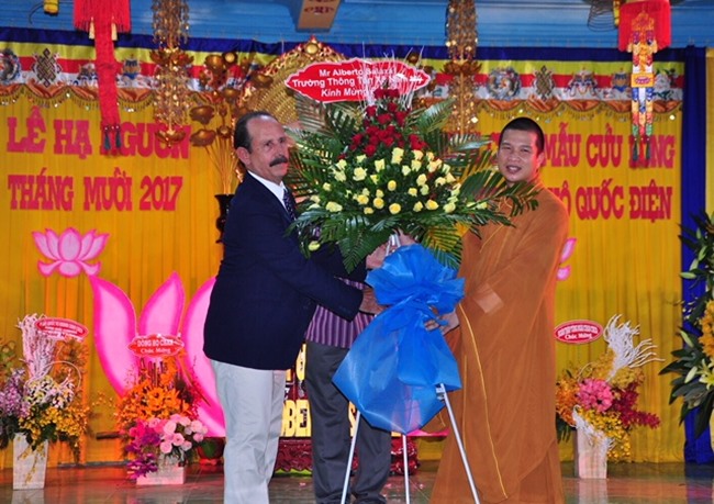 Thay mặt Ban tổ chức, trưởng Ban tổ chức Đại đức Thích Phước Ngọc có lời niệm ơn sâu sắc đến Đảng Nhà nước, Chư tôn Đức lãnh đạo GHPG VN, sự hoan hỷ đáp lại lời mời của quý vị quan khách quốc tế, cũng như đại diện Bộ Công An và chính quyền địa phương, cùng toàn thể bà con dân tộc, phật tử xa gần. Sự hiện diện mang tính dung hòa và đủ đầy về sắc tộc, màu da, tôn giáo cũng như các giai tầng trong xã hội, trong sự đa dạng tín ngưỡng tâm linh trong ngày lễ cúng Rằm Hạ Ngươn ý nghĩa này, minh chứng hùng hồn cho lời dạy bất diệt của đức Phật về sự bình đẳng, lòng bác ái và tình thần Trung Đạo trung dung.