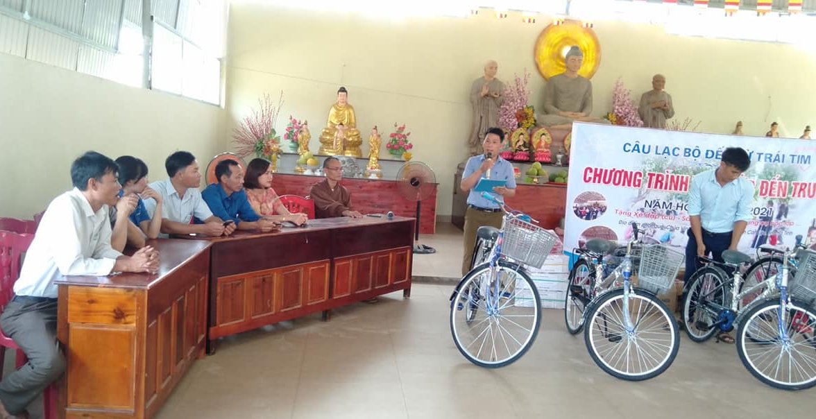 Đây là chương trình “Tiếp sức đến trường 2020”, góp xe đạp cũ mới, và dụng cụ học tập cho các em học sinh vùng sâu vùng xa tại Hà Tĩnh do Quỹ Giáo dục & An sinh Xã hội ĐĐTT TP.HCM (CLB.Đến Từ Trái Tim TP.HCM) phát động. Tổng kinh phí cho chương trình này hơn 70 triệu đồng do chư tôn đức thành viên CLB ĐTTT TPHCM, quý phụ huynh, mạnh thường quân các nơi đóng góp.