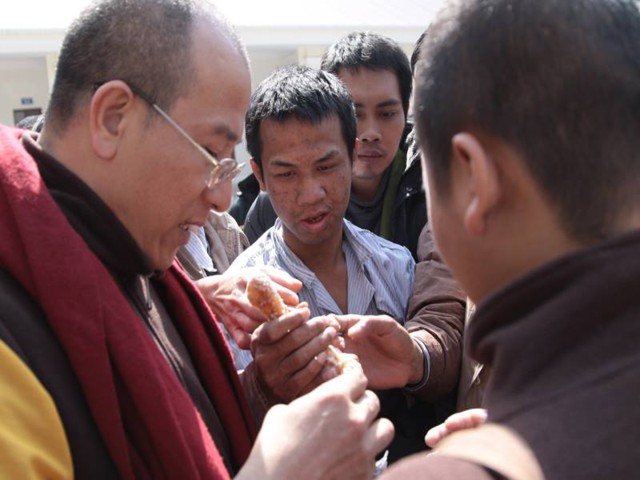 Sáng cùng ngày, tại thành phố Hạ Long, Chư tôn đức Tăng và các phật tử cũng đã trao hơn 250 suất quà cho những gia đình có hoàn cảnh khó khăn trên địa bàn, mỗi suất quà trị giá 350.000 đồng.