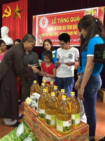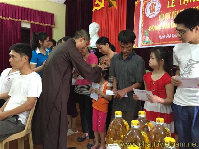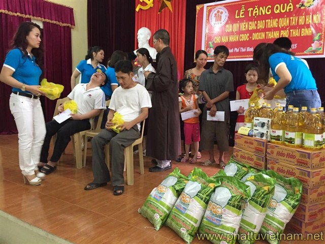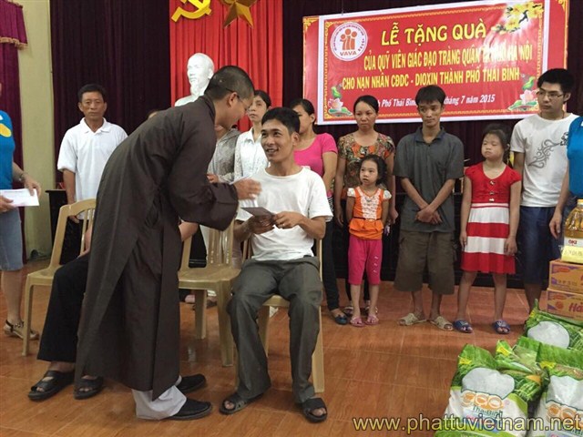 Như một nghĩa cử uống nước nhớ nguồn, nhớ về sự hi sinh của những tiền nhân đã nằm xuống để có những tháng ngày bình yên. Nhân ngày thương binh liệt sỹ, chủ nhật, 26/ 07/ 2015, Đại đức Thích Giác Tại, trụ trì Chùa Phúc Lâm, huyện Bình Lục, tỉnh Hà Nam- Chứng minh đạo sư Quỹ từ thiện Viên Giác Đạo Tràng làm trưởng đoàn, đã hướng dẫn các thành viên quỹ hội đến trụ sở Hội Nạn nhân Chất độc Màu Da cam Tp Thái Bình, trao 12 xuất quà cho những nạn nhân bị nhiễm nặng chất độc màu da cam do hội chữ thập đỏ tỉnh Thái Bình đề xuất.