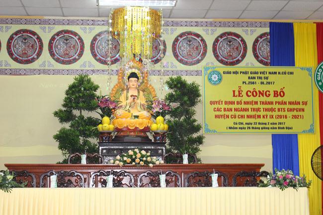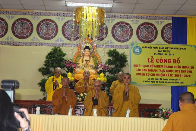 Sau đó, ĐĐ.Thích An Thường- Phó Ban kiêm Chánh Thư ký tuyên đọc quyết định bổ nhiệm thành phần nhân sự 12 ban ngành trực thuộc BTS GHPGVN huyện Củ Chi nhiệm kỳ IX (2016-2021). 12 ban ngành gồm: