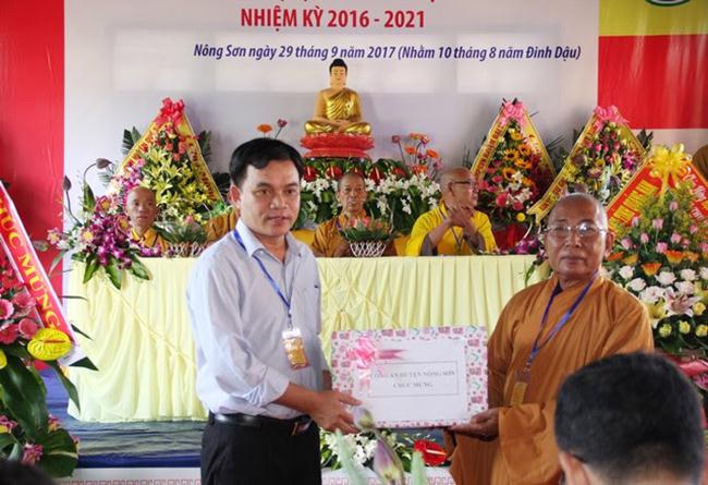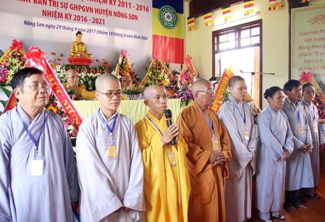 Hòa thượng Phó BTS GHPGVN tỉnh còn gởi lời cảm ơn đến các cơ quan chính quyền huyện trong thời gian qua đã tạo điều kiện thuận lợi để Phật giáo huyện miền núi Nông Sơn phát triển. Mong rằng, thời gian đến các cấp chính quyền tiếp tục quan tâm và giúp đỡ, đặc biệt xây dựng Trụ sở văn phòng Giáo hội huyện và thành lập thêm những cơ sở trực thuộc có nhu cầu.