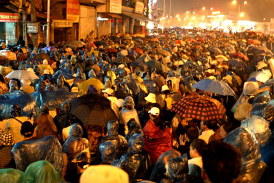 Hàng nghìn người đội mưa lễ Phật bên ngoài tổ đình Phúc Khánh