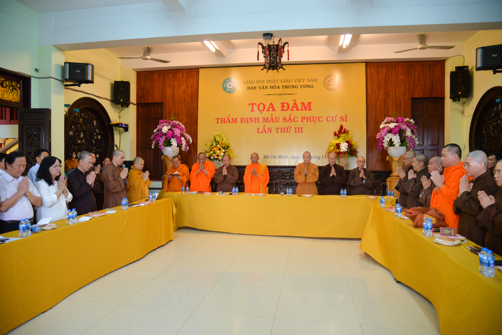Để đi đến thống nhất mẫu sắc phục dành cho cư sĩ Phật giáo Việt Nam, Ban Văn hoá Trung ương GHPGVN đã tiếp tục tổ chức buổi toạ đàm lần thứ 3 thẩm định đề án “Sắc phục cư sĩ” vào chiều ngày 22/11 vừa qua, tại chùa Pháp Hoa, Quận 3, TP.HCM.