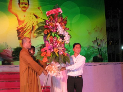 Ông Trần Trung Tính – Phó chủ tịch Mặt trận Tổ quốc Thành phố tặng hoa chúc mừng