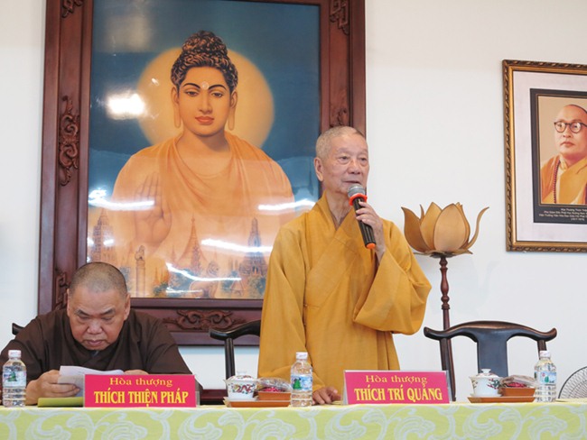 HT. Thích Trí Quảng – Trưởng Ban tổ chức Đai lễ kỷ niệm 35 năm thành lập GHPGVN phát biểu khai mạc. Hòa thượng nhấn mạnh, Đại lễ Kỷ niệm 35 năm ngày thành lập GHPGVN là sự kiện trong đại đối với Tăng ni, Phật tử cả nước. Đây là sự kiện được  sự quan tâm chỉ đạo của chư tôn đức của Hội đồng chứng minh, HĐTS GHPGVN, BTS GHPGVN TP.HCM, vì thế các thành viên phải ý thức được trách nhiệm được giao, tận tâm tận lực trong mọi công việc của mình đảm trách. Hiện nay, thời gian của chúng ta không còn nhiều, cho nên trong cuộc họp này, các tiểu ban cần phải báo cáo cụ thể, ngắn gọn về tiến độ công việc để  Ban tổ chức nắm bắt  kịp thời