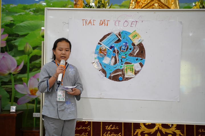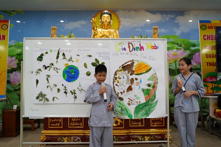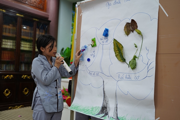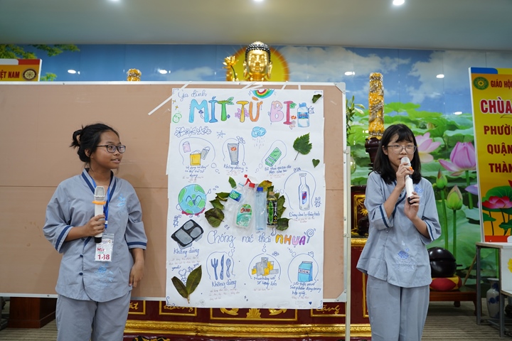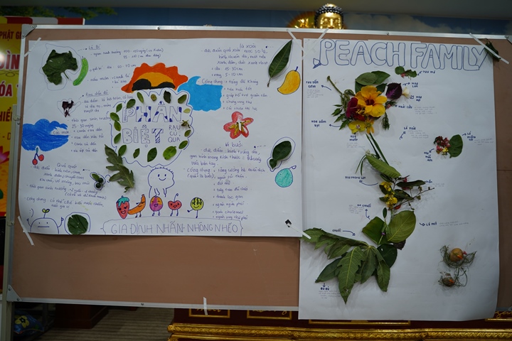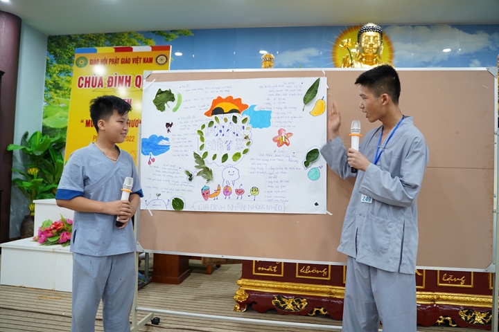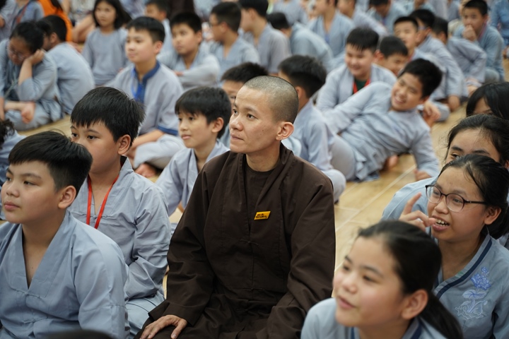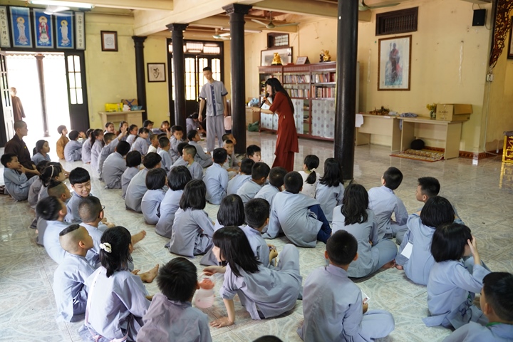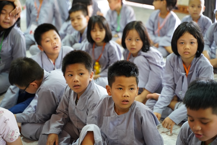 Đặc biệt hơn, Ban tổ chức khóa tu đã phân chia 320 tu sinh chia thành 10 chúng cụ thể dưới sự hướng dẫn của quý Thầy và các anh chị huynh trưởng, với những cái tên vô cùng dễ thương như: Xoài Hoan Hỷ, Nhãn Đức Hạnh, Nho Hạnh Phúc, Cam Đoàn Kết, Dừa Hiểu Thương, Đào Bao Dung, Bưởi Tinh Tiến, Mít Từ Bi, Mận Lắng Nghe, Táo Bình Yên. Dưới mái chùa thân thương, các chúng đã trải qua vô vàn những kỷ niệm đẹp bên quý thầy, bên các bạn đồng tu, trong những hoạt động vô cùng ý nghĩa như cùng nhau nấu ăn cúng dường quý Thầy, thi thuyết trình với chủ đề “bảo vệ môi trường”, thực tập ăn chay trong sự biết ơn và chính niệm…. Hơn nữa, các bạn thanh thiếu niên còn được quý Thầy cô chia sẻ, lắng nghe và giải đáp những khúc mắc trong cuộc sống, hướng dẫn cách kiểm soát cơn giận, xử lý nhẹ nhàng trước những stress trong cuộc sống thường ngày, học cách yêu thương và biết nói lời cảm ơn – xin lỗi với mẹ cha và những mối quan hệ xung quanh.