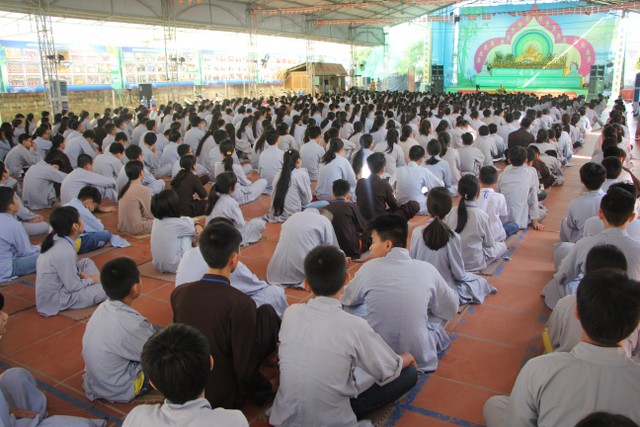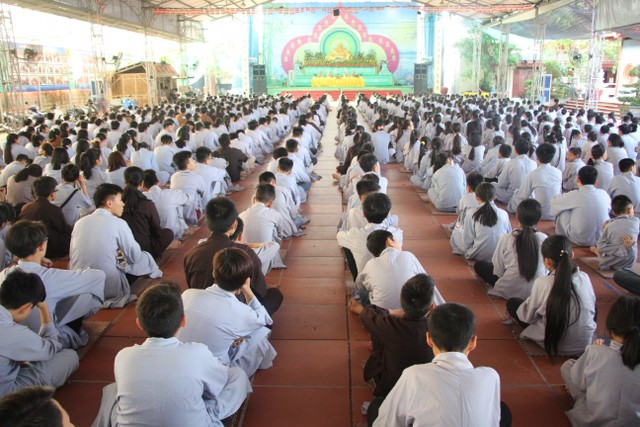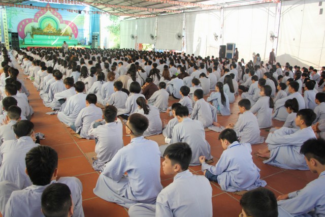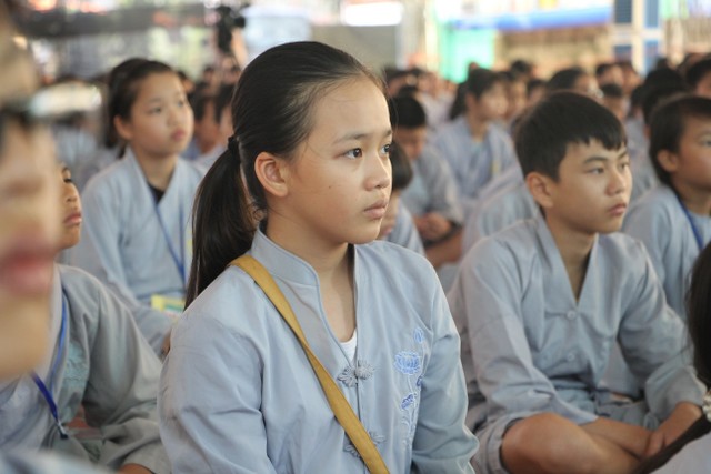 Buổi chiều cùng ngày, quý Thầy đã làm lễ quy y Tam Bảo, trang bị cho các bạn hành trang từ bi và trí tuệ của đạo Phật dựa trên nền tảng trở về nương tựa Phật – Pháp – Tăng và năm nguyên tắc đạo đức căn bản của người Phật tử. Chương trình thi văn nghệ và vẽ tranh thuyết trình tối cùng ngày đã mang lại cho các bạn thiện sinh không khí tu tập vô cùng sôi động, xua đi sự mệt mỏi của những ngày hè.