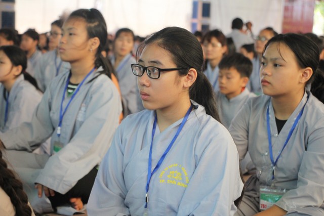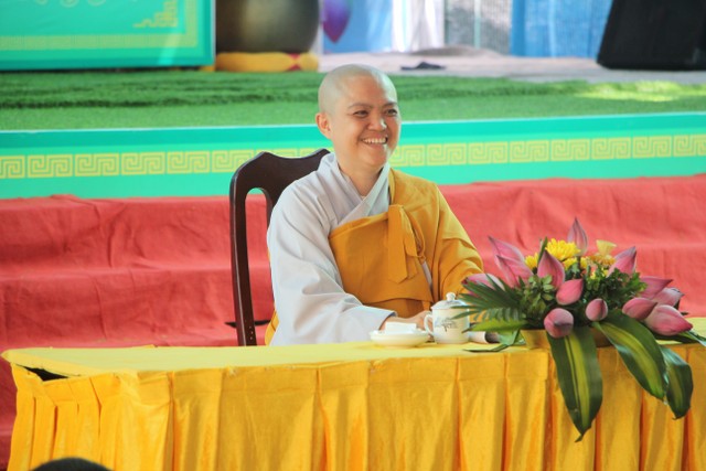 Thời giảng pháp của Sư cô Hương Nhũ với chủ đề “Những đức tính cần có của tuổi trẻ” giúp các em thấm thía hơn ân tình của hai đấng sinh thành đối với người con, thông qua các mẩu chuyện Phật giáo Sư cô nhắn nhủ mỗi bạn trẻ cần thường xuyên trau dồi đức tính kiên nhẫn, thật thà, dũng cảm, hiếu hạnh để trở thành những đóa sen hồng dễ thương.