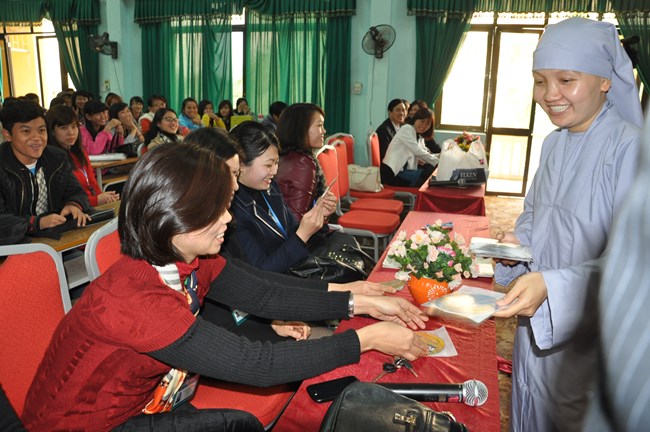 SC. Thích Nữ Chúc Hiếu thuyết giảng tại Trường CĐ Nghề Cơ Điện HN