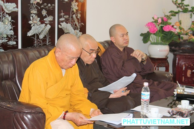 Chủ trì phiên họp: HT.Thích Quang Nhuận – Phó ban hoằng pháp TW, HT.Thích Quảng Hiển – Trưởng ban trị sự GHPGVN tỉnh Bà Rịa Vũng Tàu, HT.Thích Tấn Đạt – Phó VP II, TT.Thích Đức Thiện – Tổng thư ký HĐTS GHPGVN.