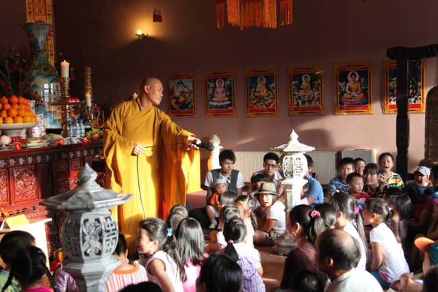 Trong lời phát biểu khai mạc, thầy trụ trì đã nhấn mạnh việc tổ chức têt Trung thu chính là chăm sóc đời sống tinh thần, tạo sân chơi vui tươi lành mạnh cho các cháu, duy trì bản sắc văn hóa dân tộc VN nơi quê hương thứ 2.