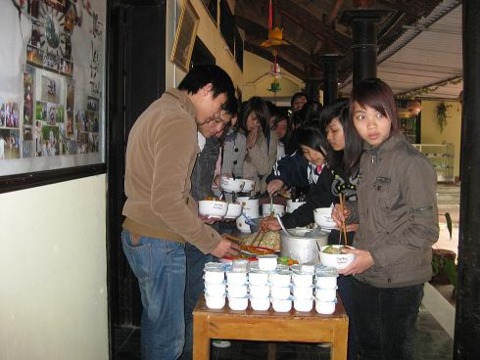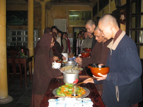 Các bạn sinh viên trật tự đi sau, chuẩn bị giờ ngọ trai